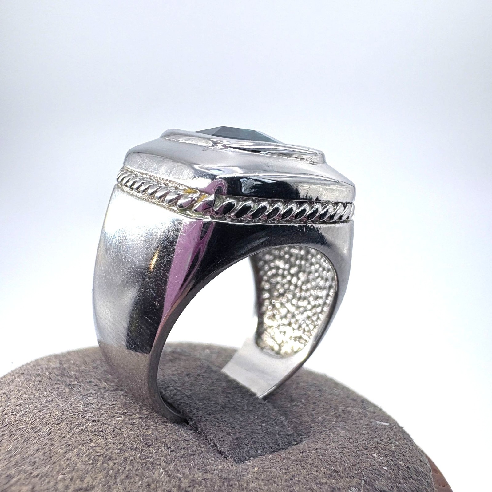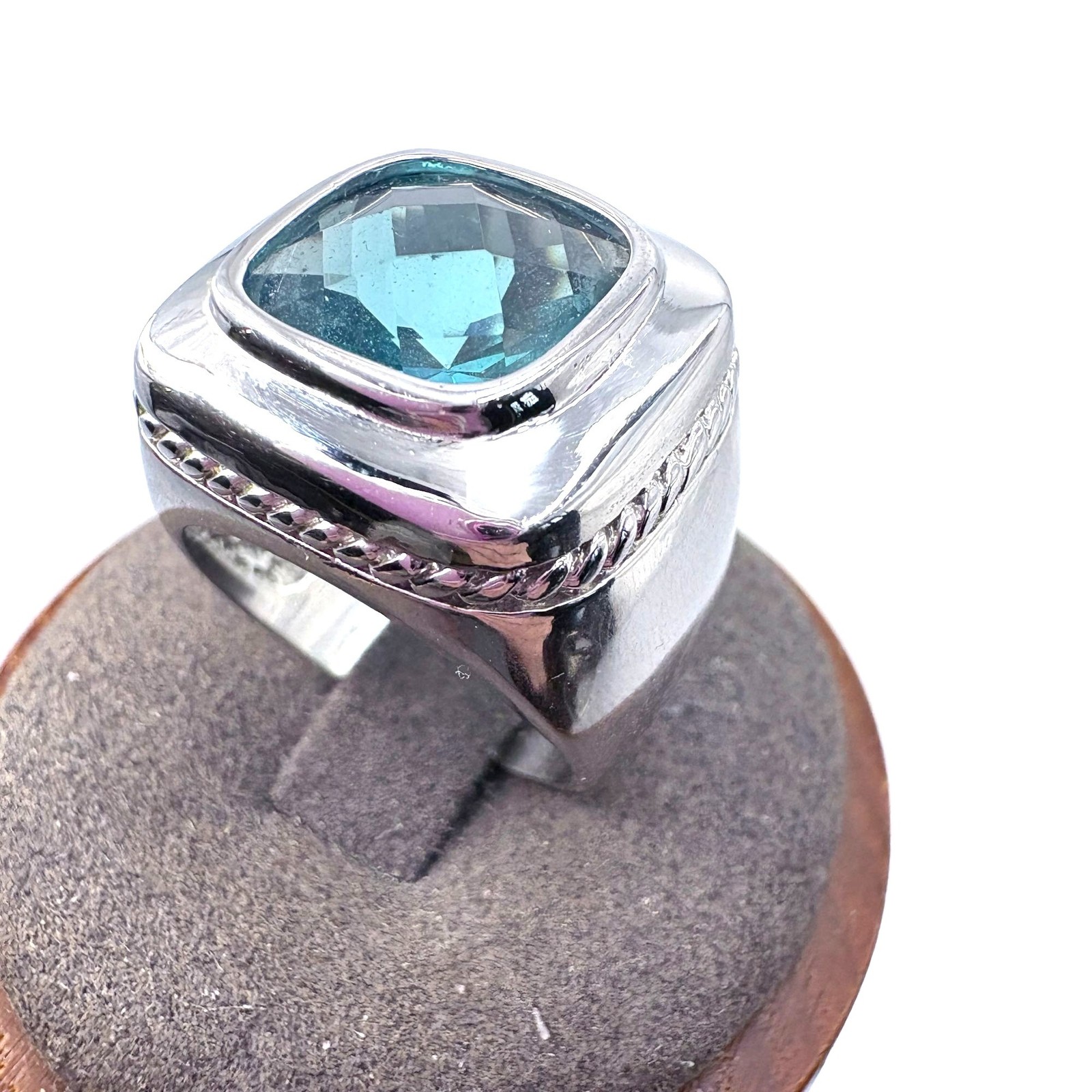 как выглядит VTG Solid Sterling Silver 925 Blue Topaz Tapered Band Statement Ring Size 7 фото