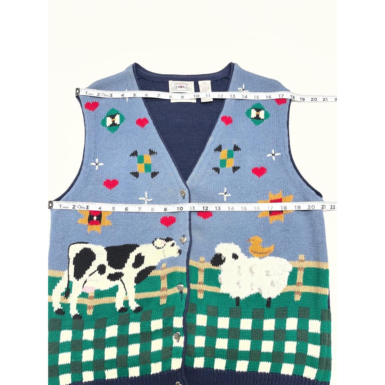 Vintage Countryside Classics Womens Hand Knit Farm Scene Cottage Core Vest XLTG