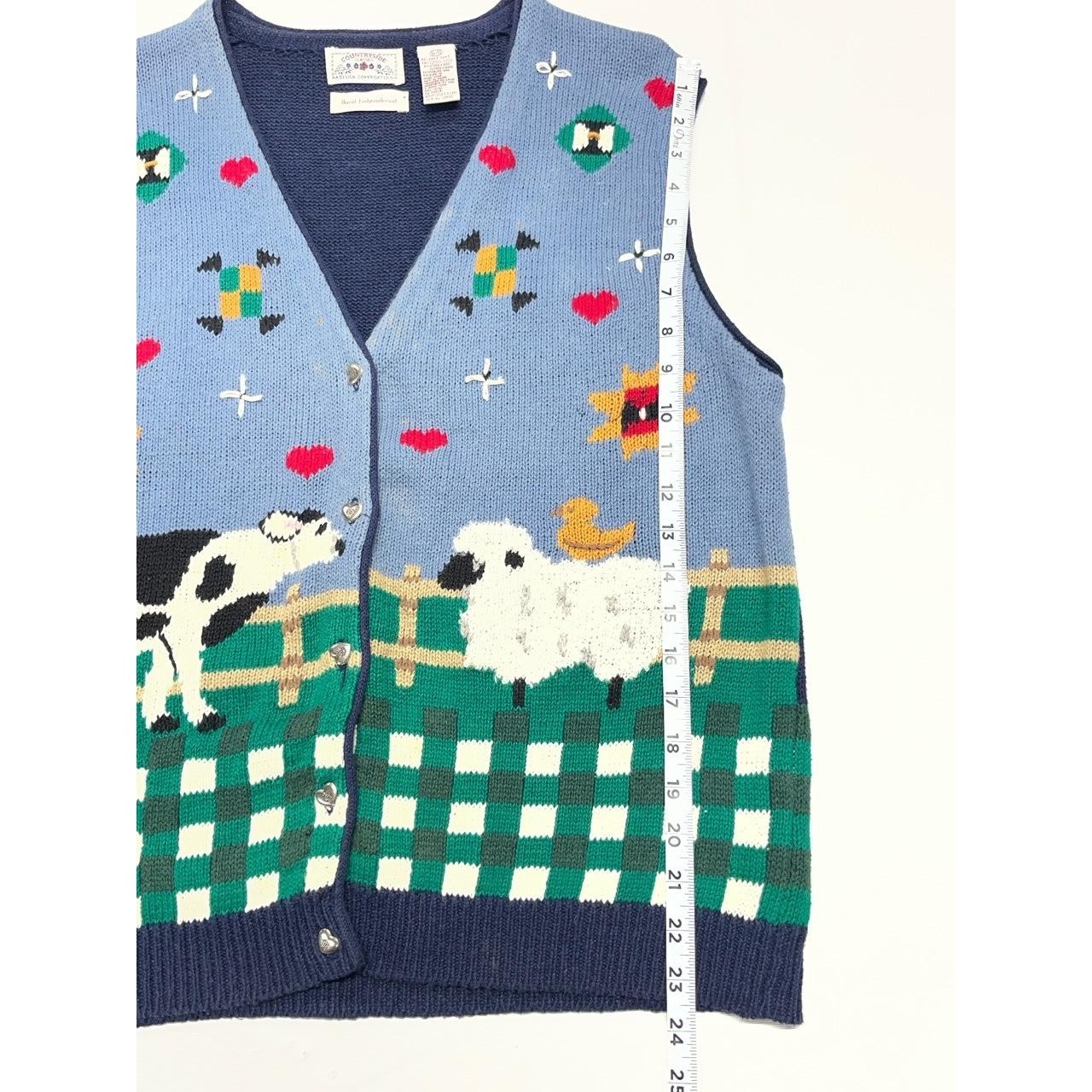 как выглядит Vintage Countryside Classics Womens Hand Knit Farm Scene Cottage Core Vest XLTG фото