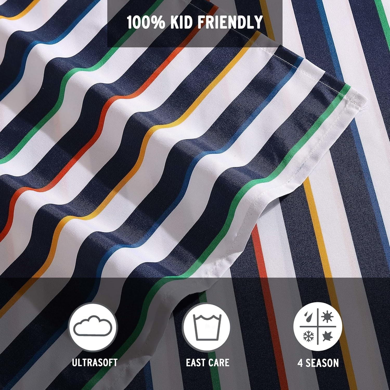Eddie Bauer Kids Twin XL Sheet Set Stain Resistant Bedding Stripes Game Blue