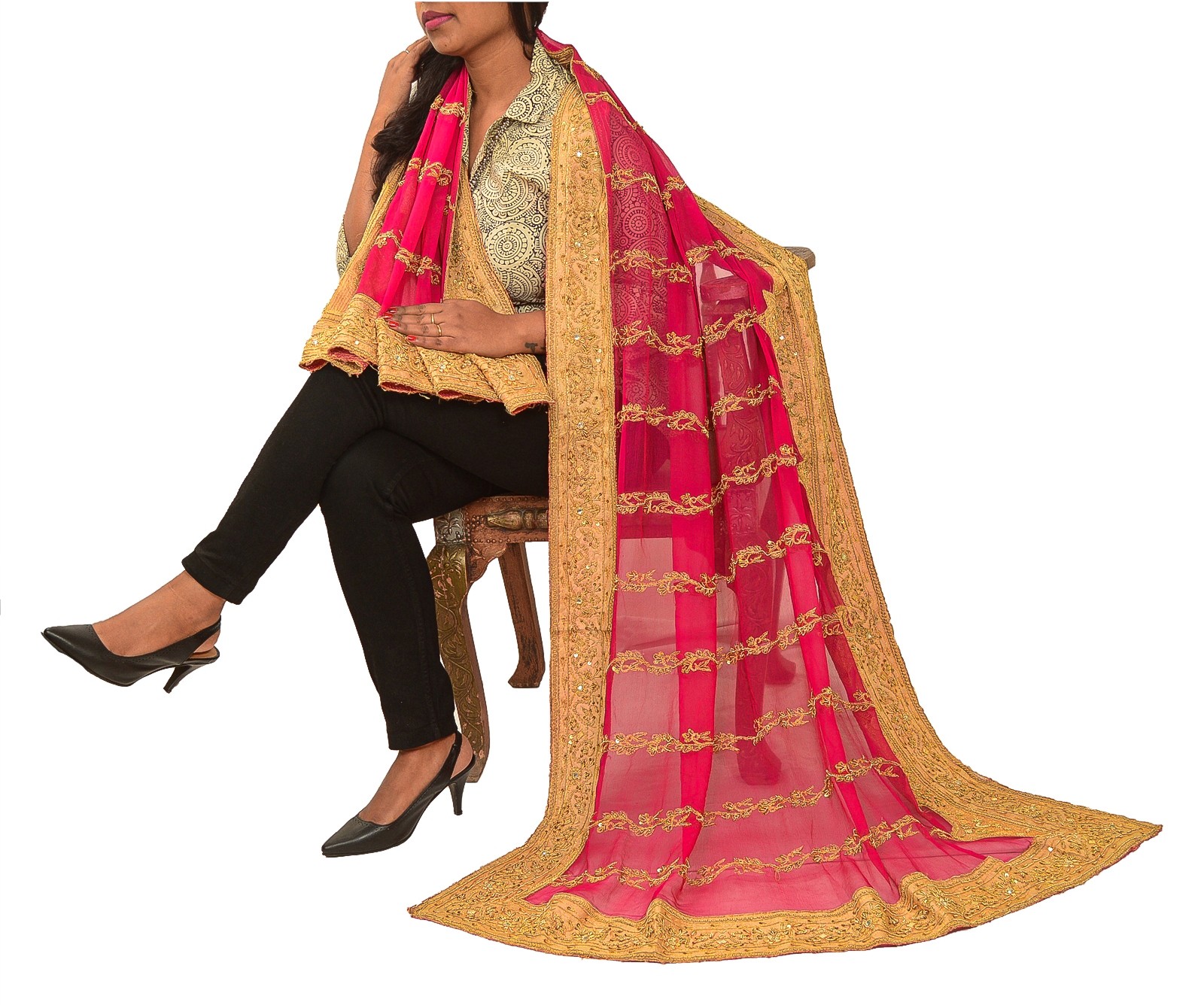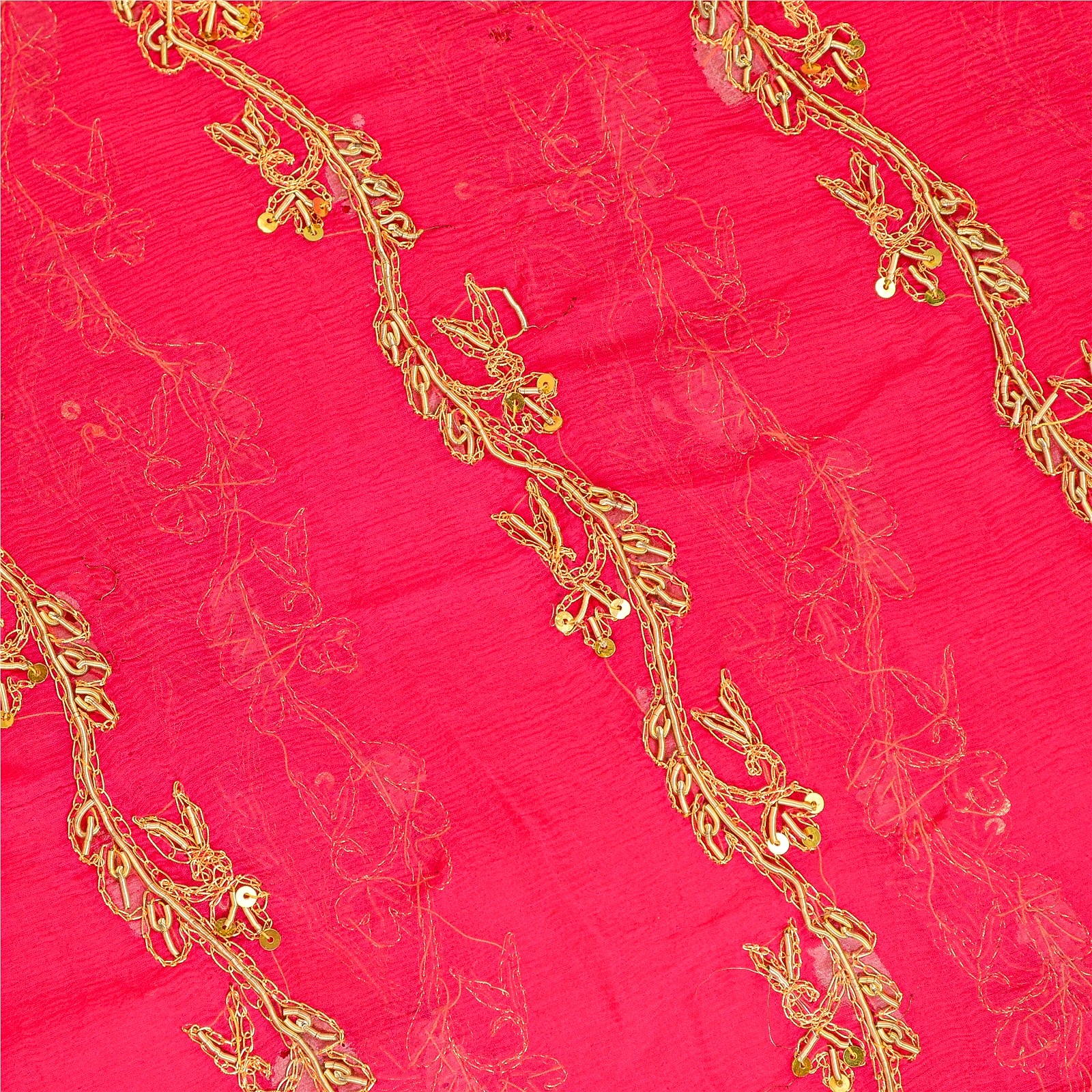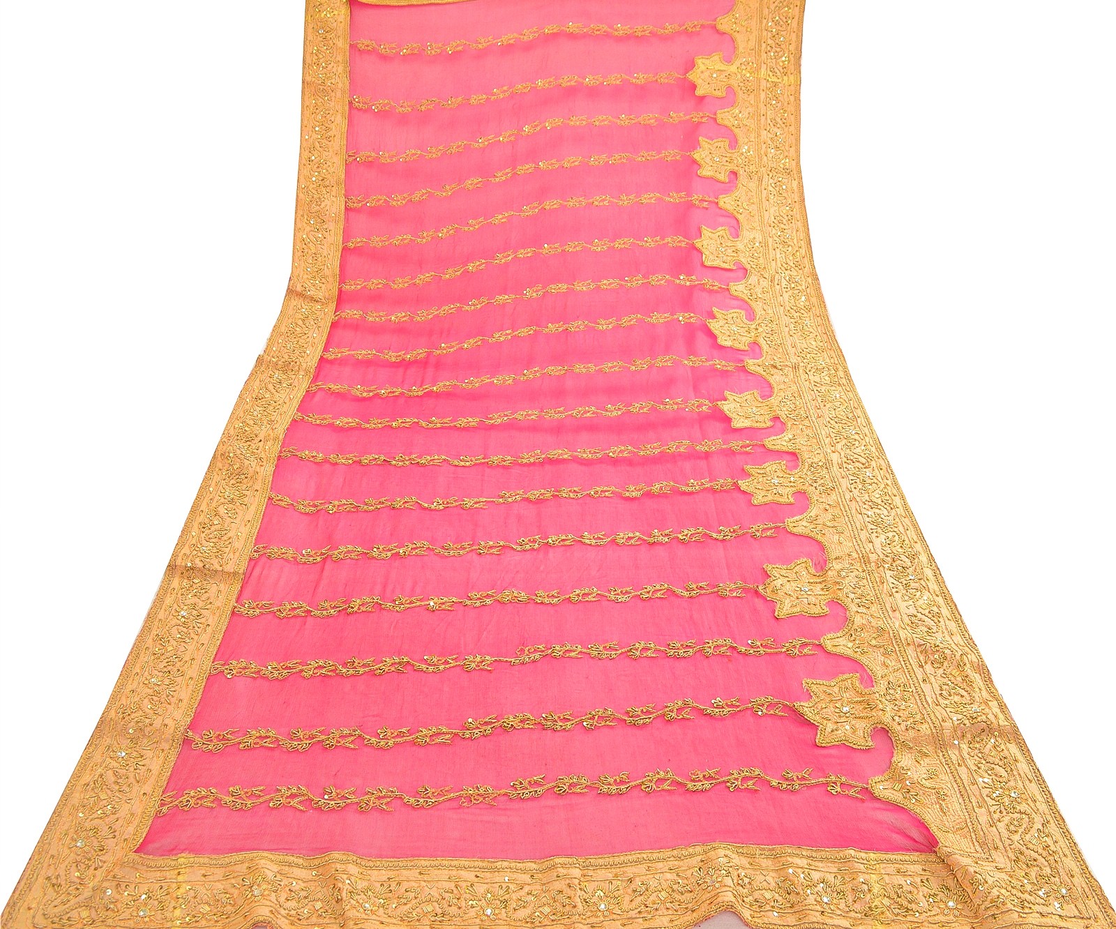 Sanskriti Vintage Pink Dupatta Pure Chiffon Silk Hand Beaded Zardozi Wrap Stole