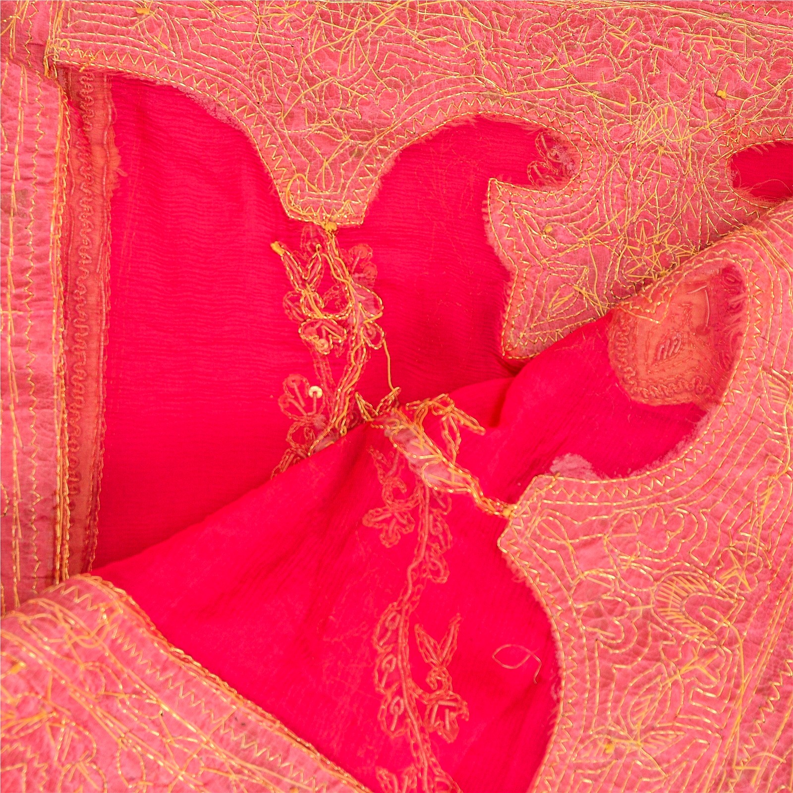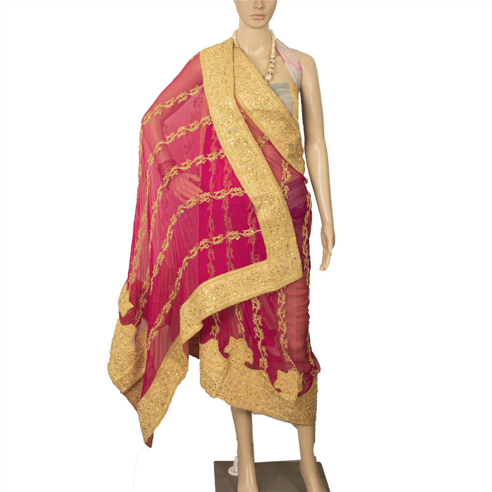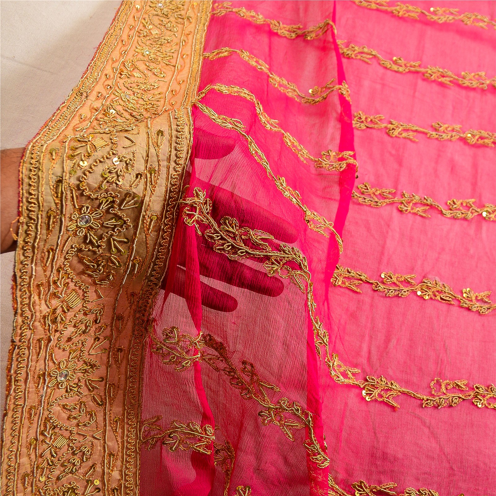 как выглядит Sanskriti Vintage Pink Dupatta Pure Chiffon Silk Hand Beaded Zardozi Wrap Stole фото