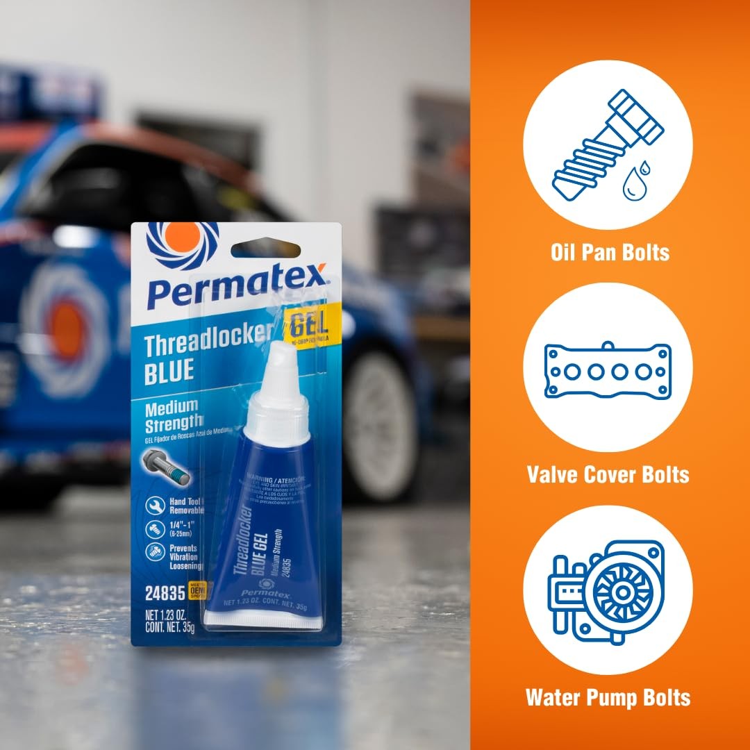 Permatex 24835 Blue Gel Medium Strength Threadlocker: Prevents Loosening Corro