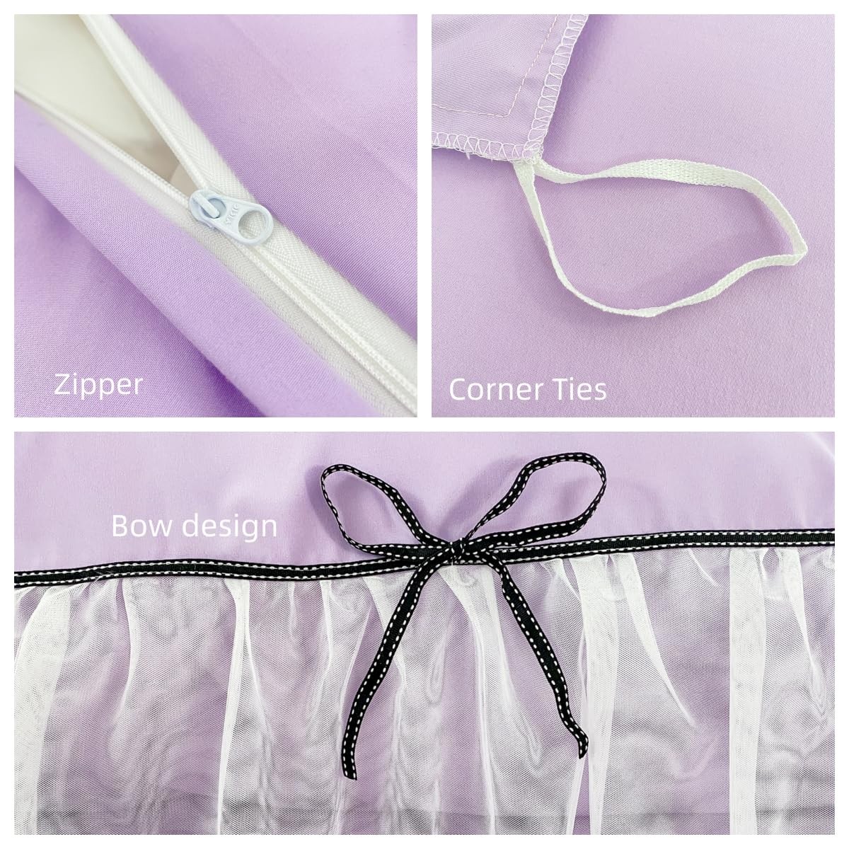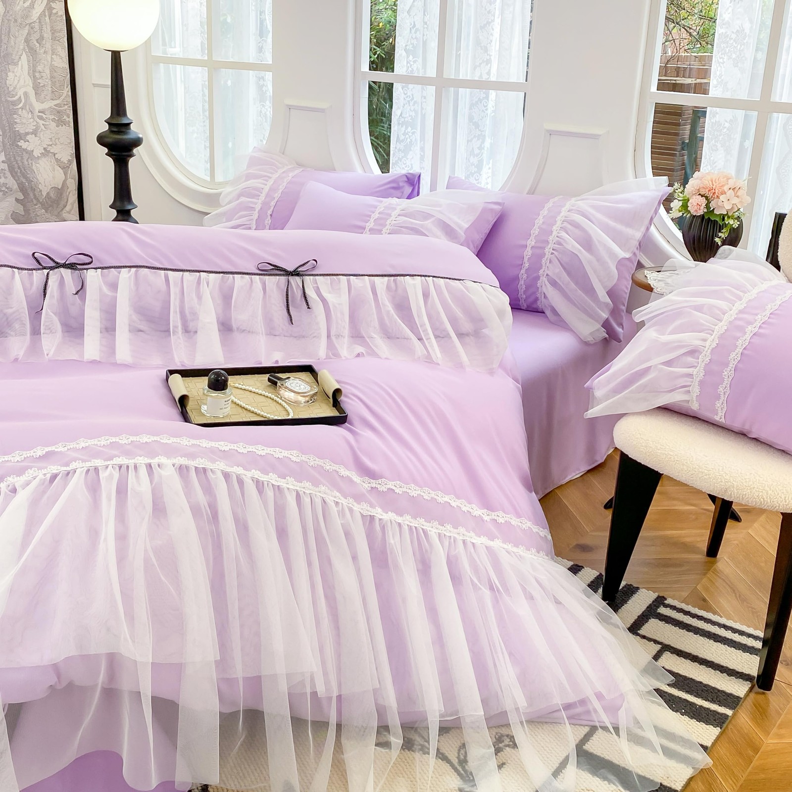 Lace Ruffled Duvet Cover Set, Bow Duvet Cover, Twin Princess Bedding,100 Pol...