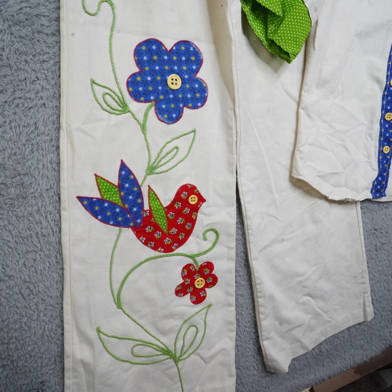 Vintage 60s Hippie Outfit Womens 9 Flower Bird Bell Bottom Wiggle Worm