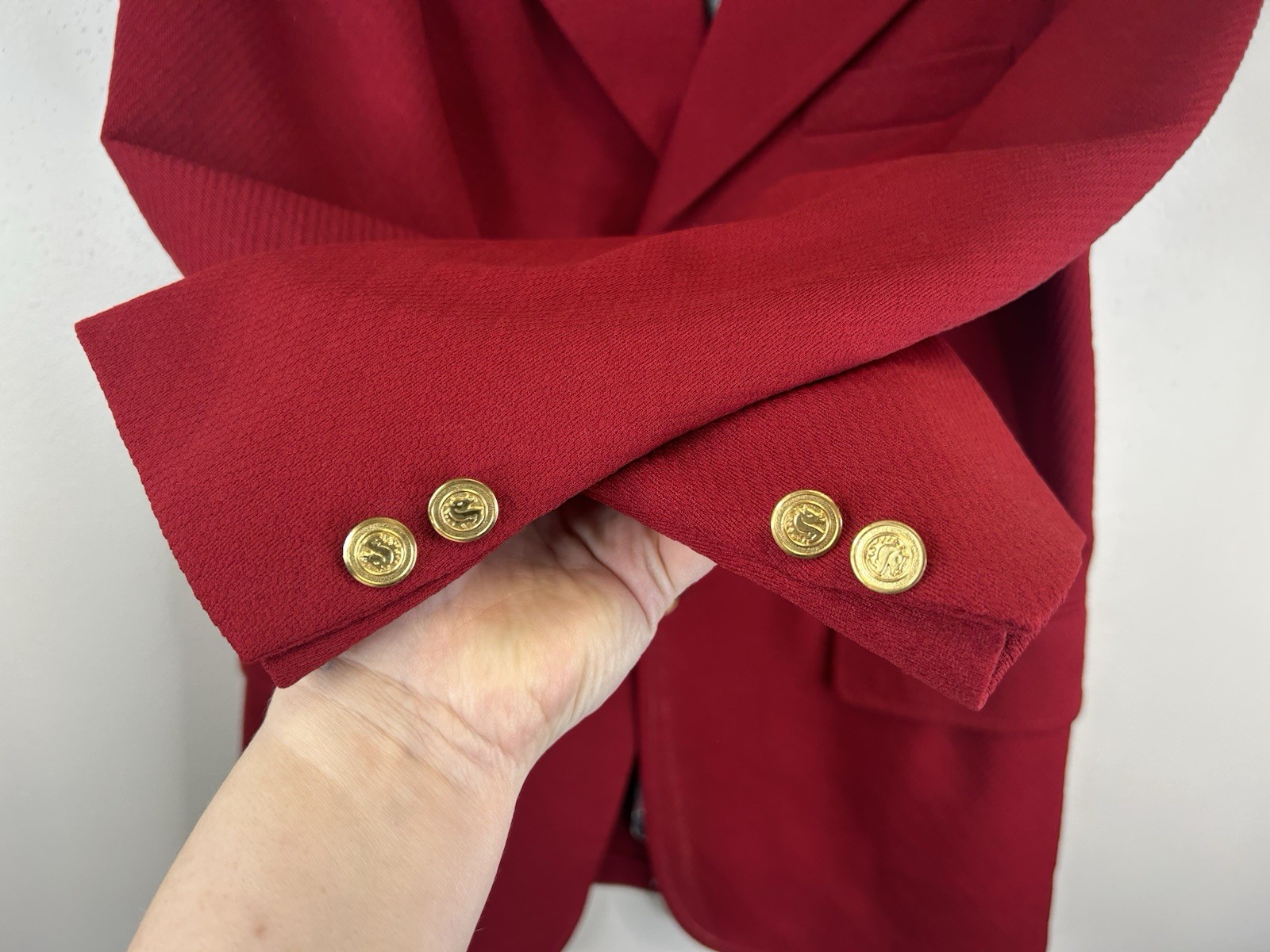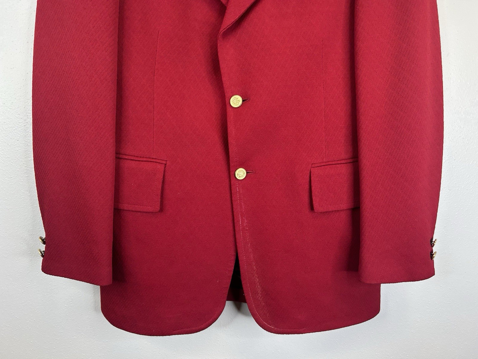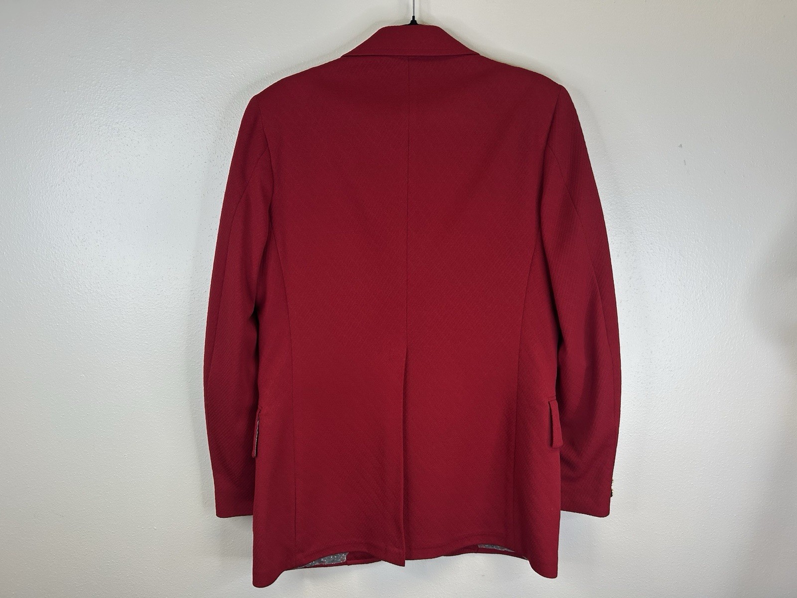 Retro Vintage 1970s Red Polyester Blazer with Gold-tone Buttons 41 L Mens Suit
