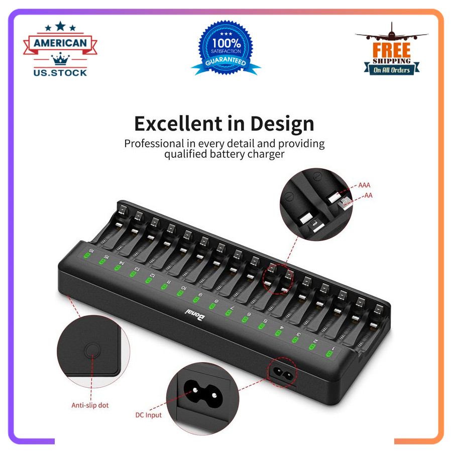 BONAI AA AAA Battery Charger 16 Bay for NiMH NiCD Rechargeable Batteries Inde...