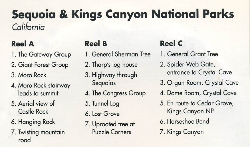Sequoia and Kings Canyon California View-Master 3 TEST Reels and Copy Cover