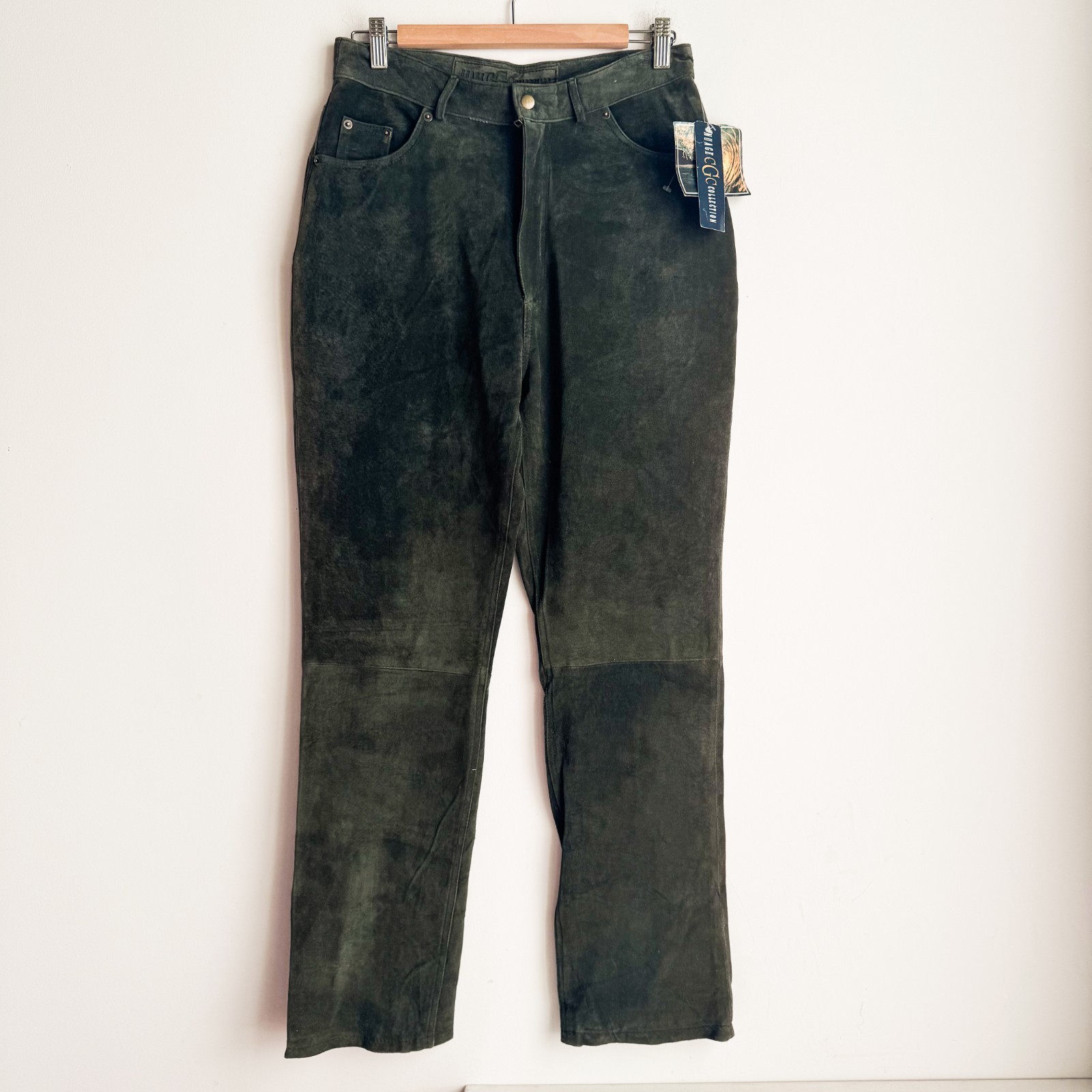 Vintage Nuage Deadstock Washable Suede Olive Green High Waist Pants 12