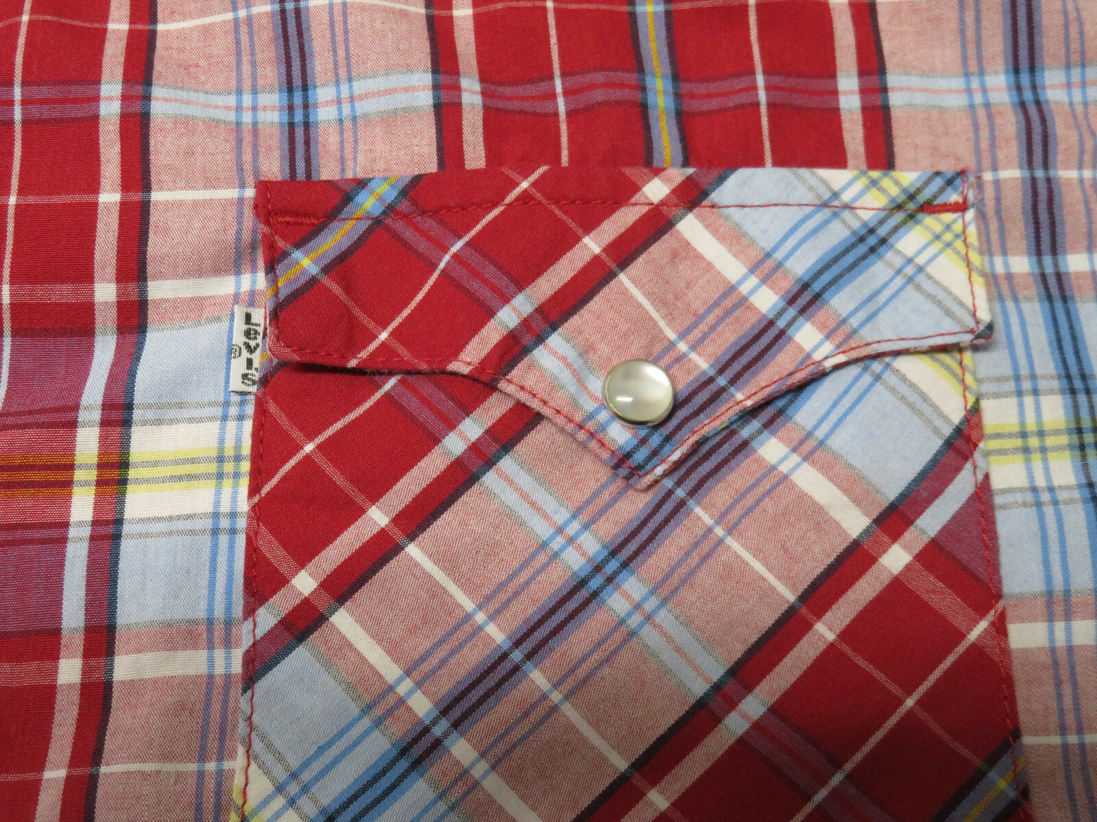 как выглядит Levis Pearl Snap Button Front Long Sleeve Western Shirt Blue White Plaid Size XL фото