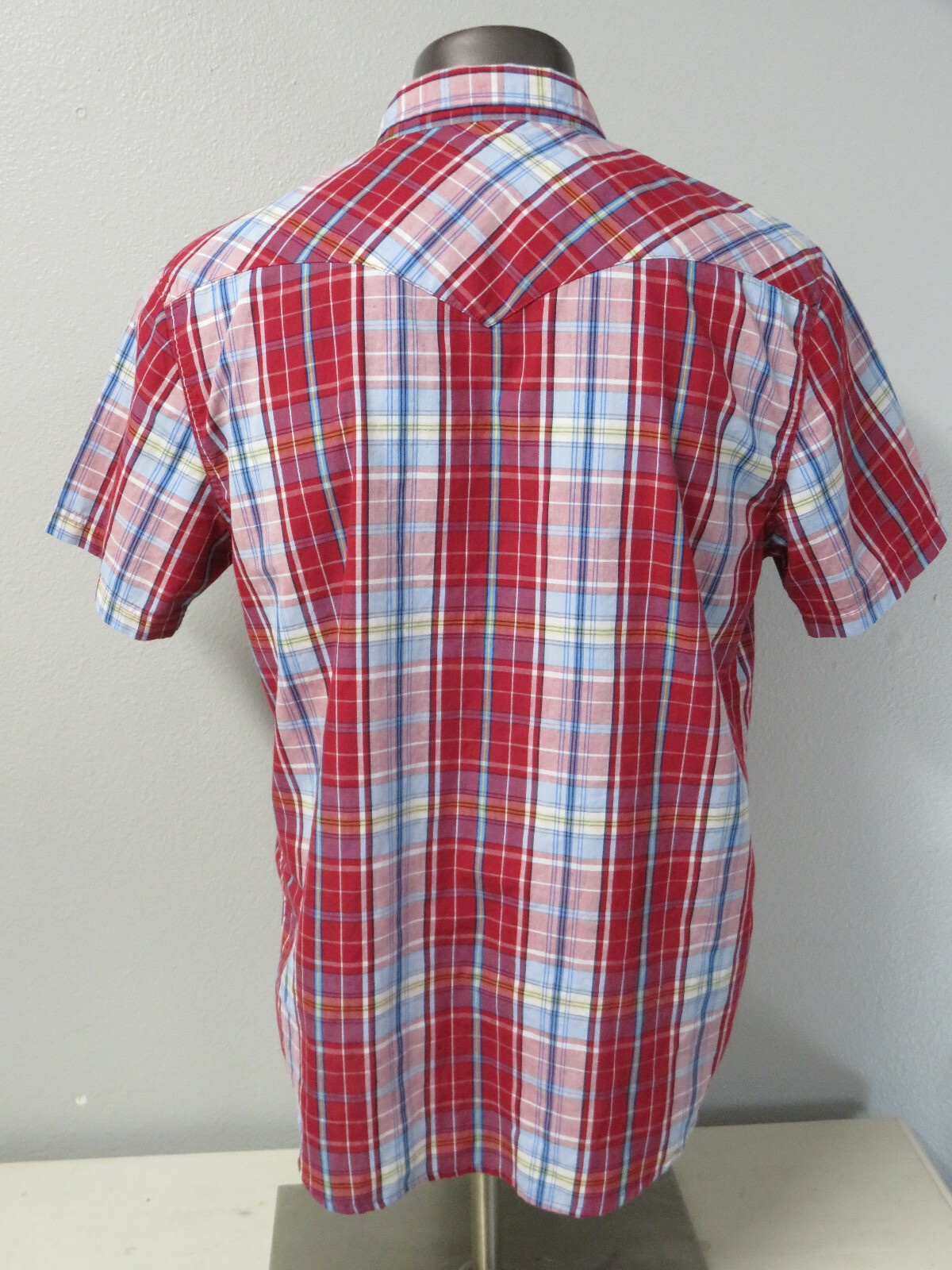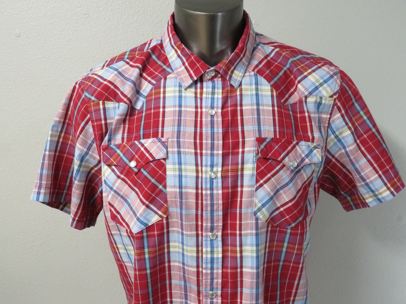 Levis Pearl Snap Button Front Long Sleeve Western Shirt Blue White Plaid Size XL