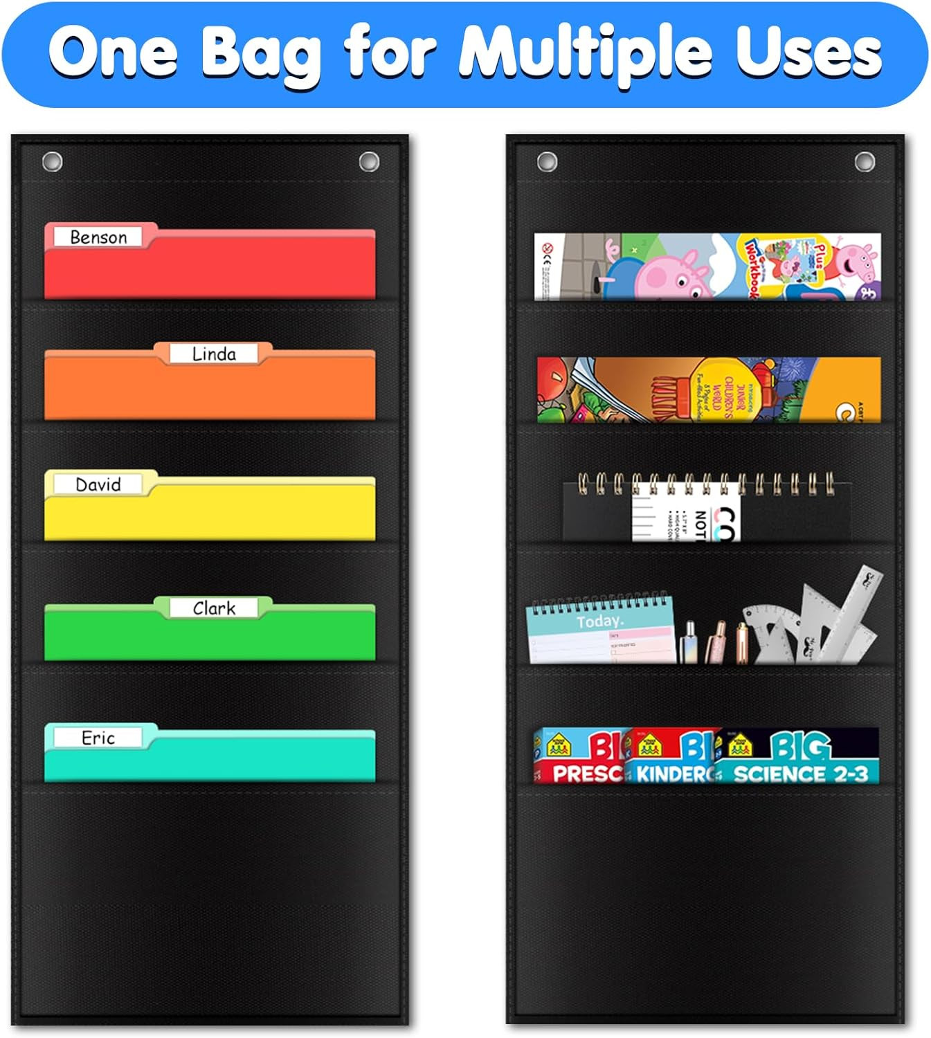 5 Pocket Hanging Wall File Organizer, Storage Pocket Chart, Wall Mount/Over T...