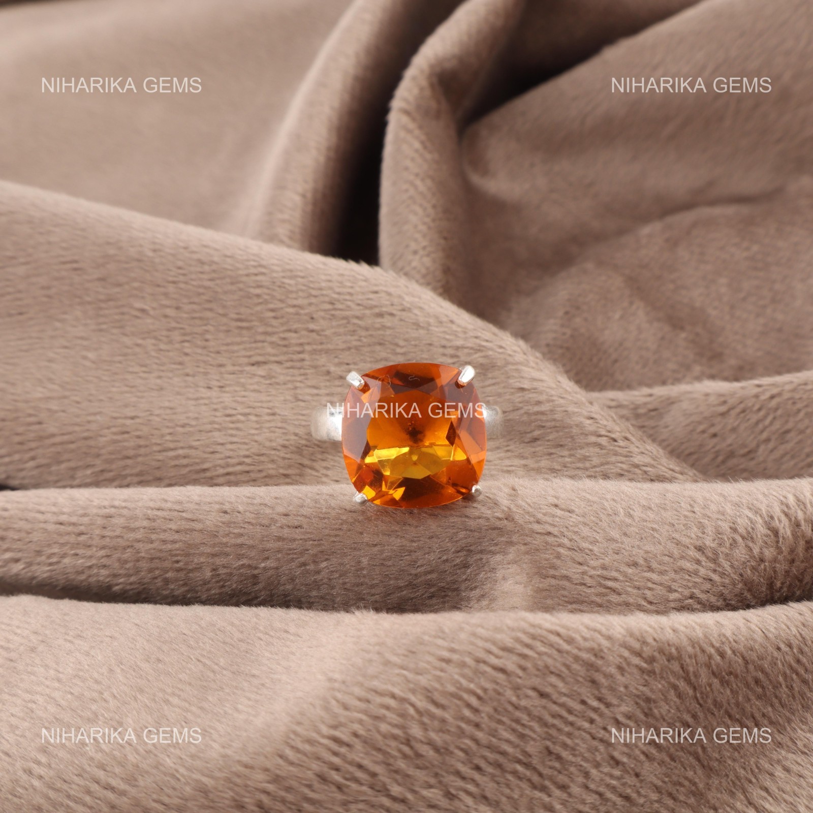 Cushion Citrine Gemstone 925 Silver Valentines Solitaire Birthday Ring Jewelry