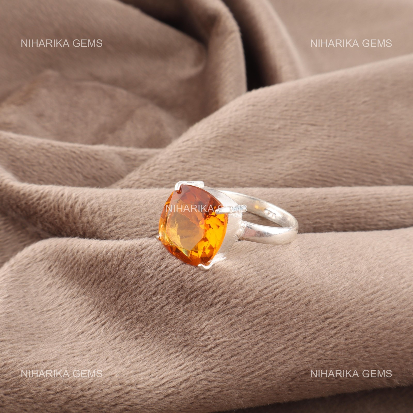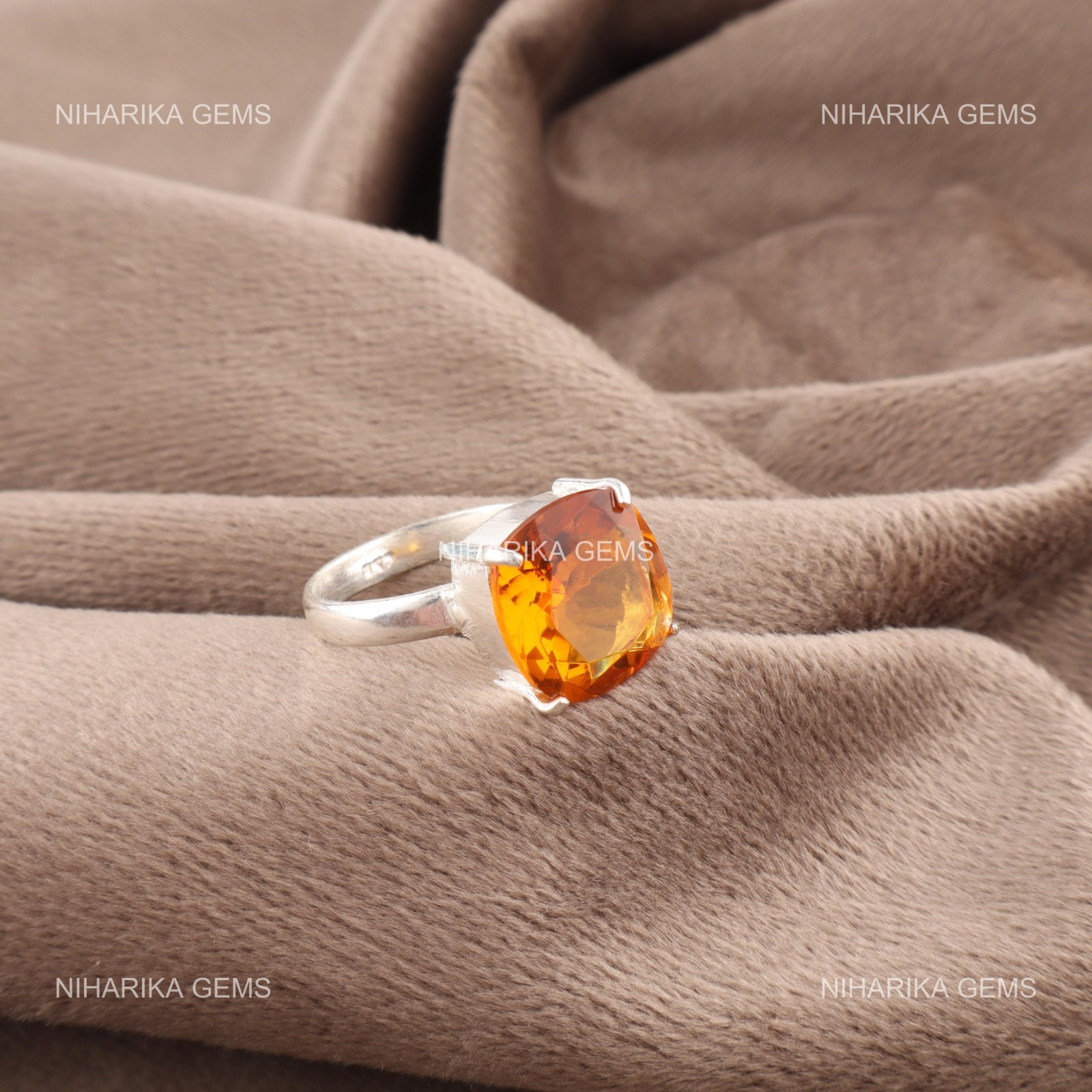 как выглядит Cushion Citrine Gemstone 925 Silver Valentines Solitaire Birthday Ring Jewelry фото