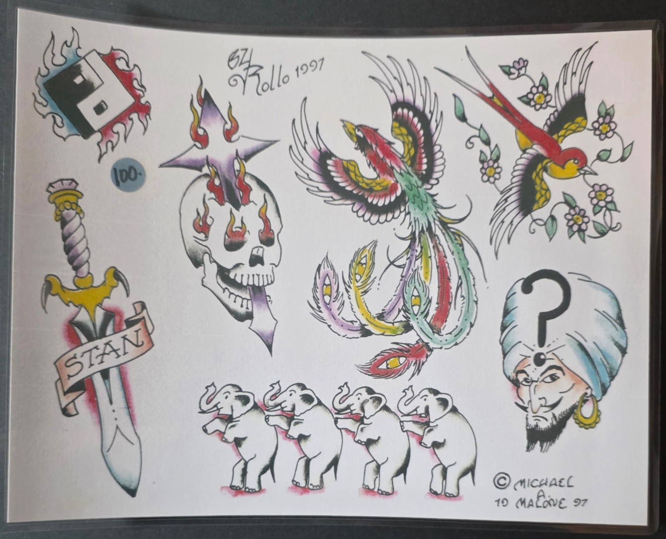 как выглядит 1989-98, Traditional Mike Rollo Malone Tattoo Flash 8 Sheet , Full Color Set, HI фото