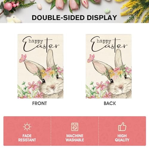 Happy Easter Garden Flag 12x18 Inch Double Sided Outside, Garden Size-12 x 18