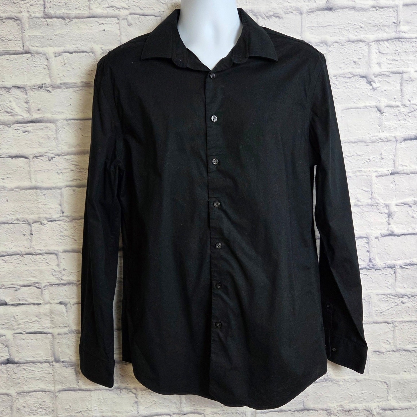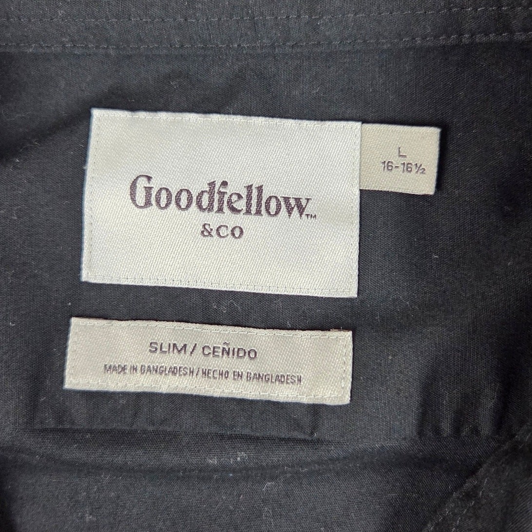 Goodfellow Mens Large 16-16 1/2 Black Slim Long Sleeve Button Down Dress Shirt