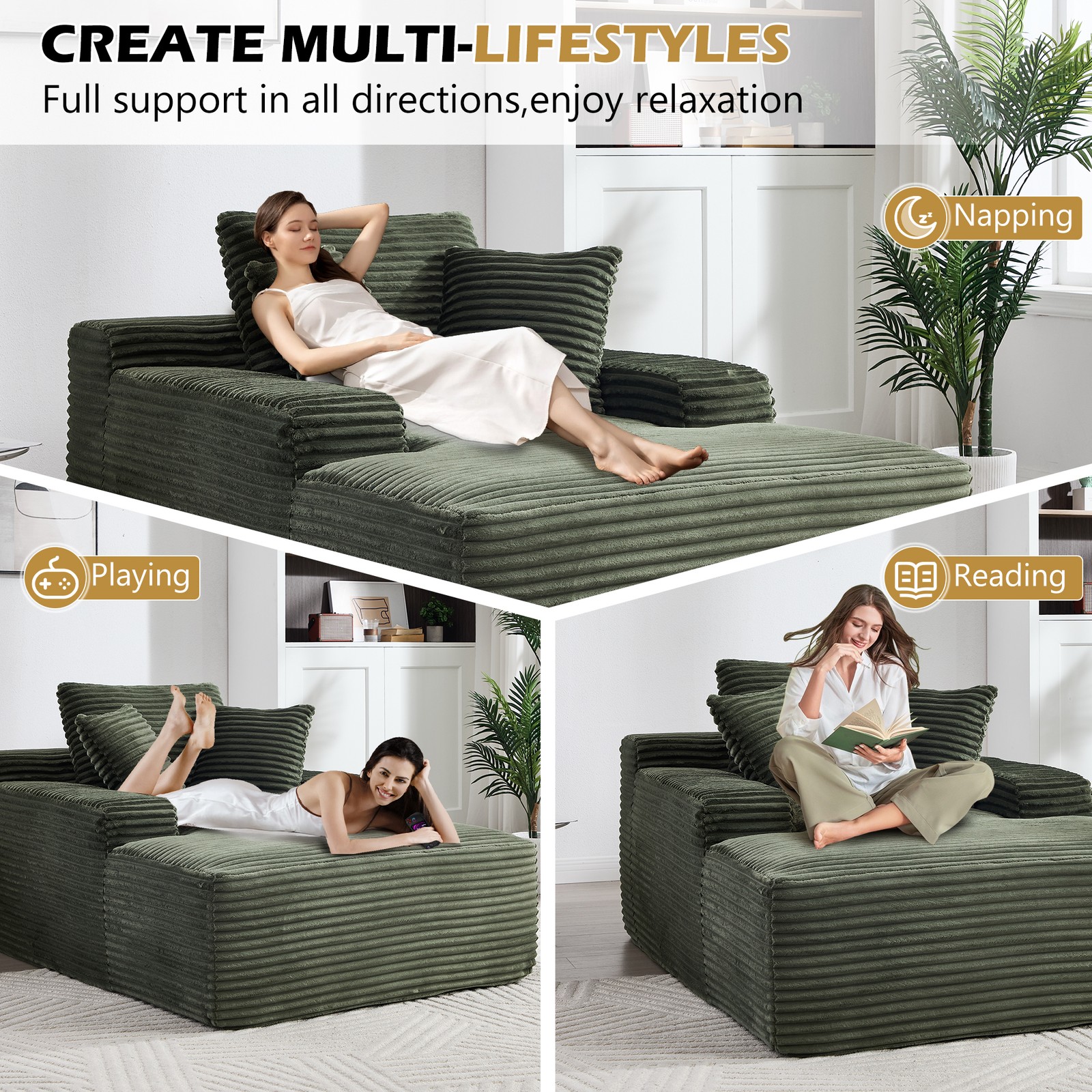 Oversized Boneless Chaise Lounge Sofa Bed Reading Chair Corduroy Cloud Couch