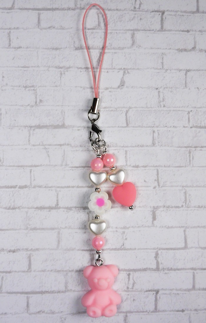 Teddy Bear Beaded Cell Phone Charm Strap Flowers Hearts Pink White New