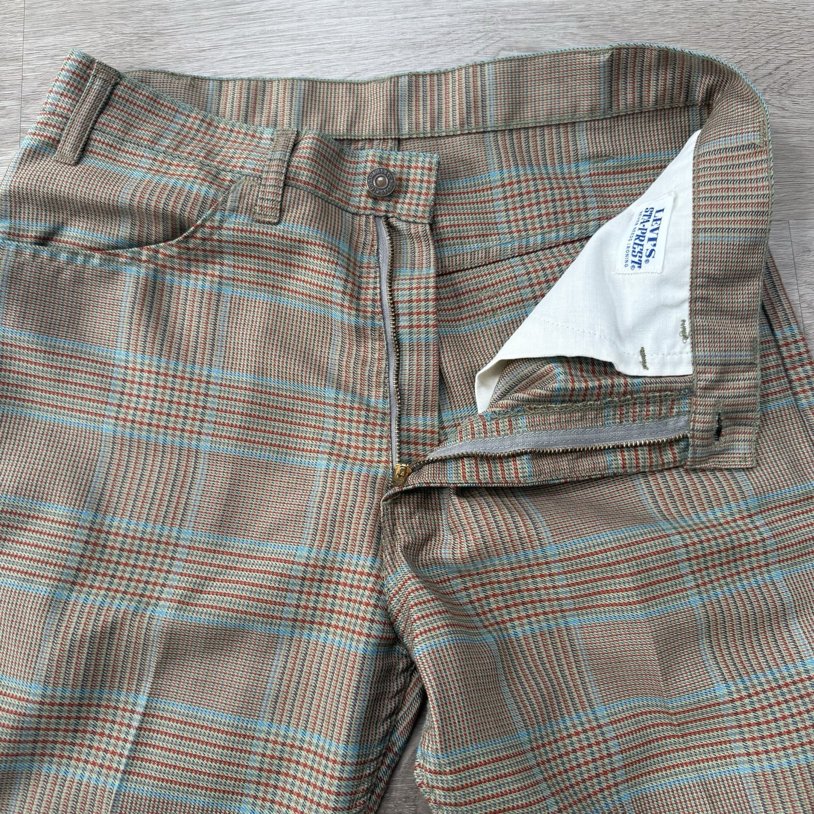 Vintage 60s 70s Levis Big E 646 Plaid Bell Bottom Black Tab Checker Pants 30x26