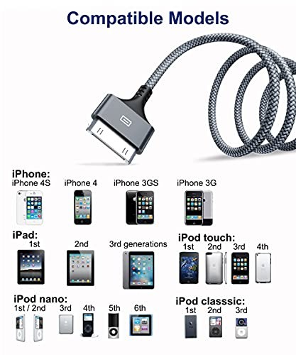 10 Foot 30 Pin USB Charging Cable 2 Pack