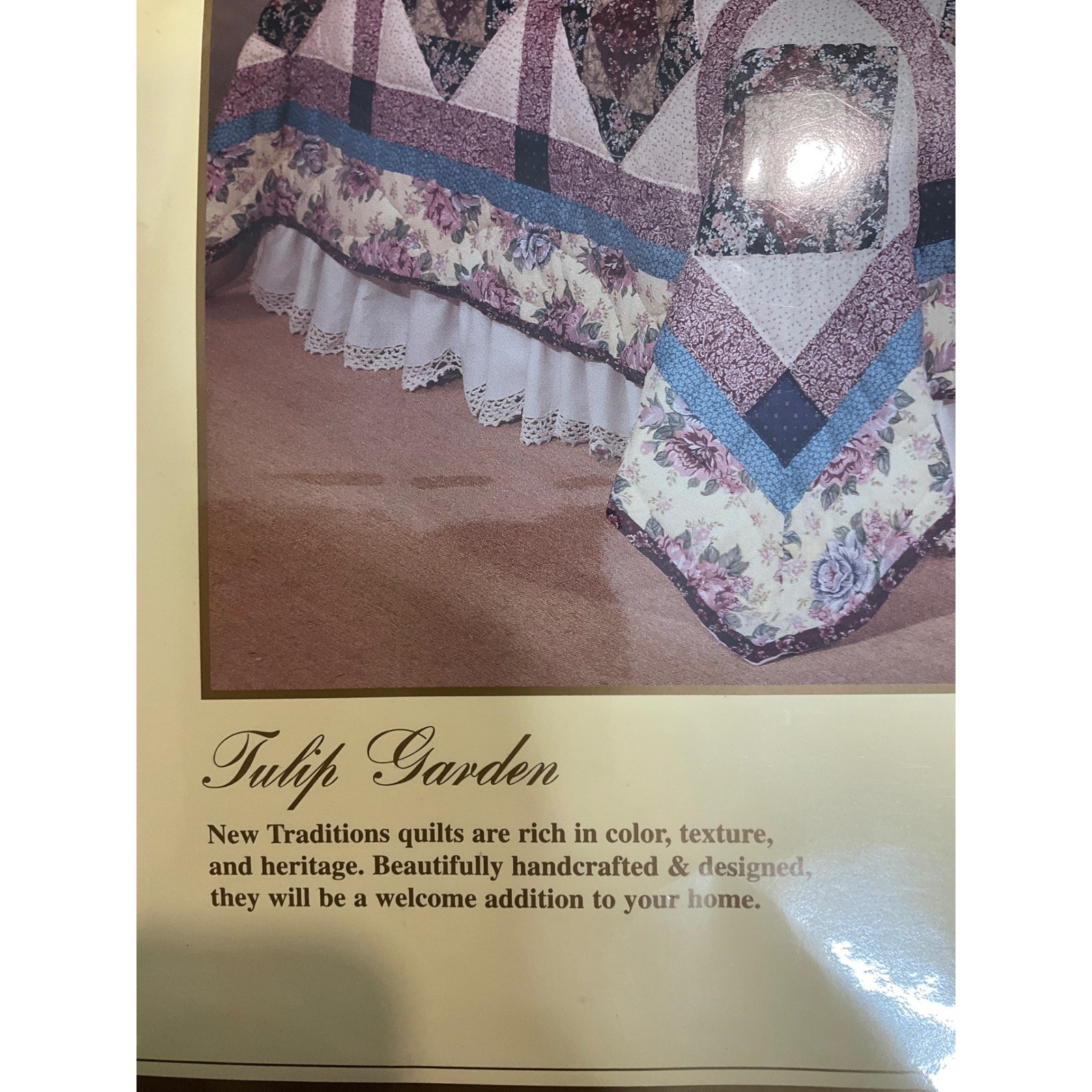 как выглядит Vtg Sears New Traditions Handcrafted Quilt Tulip Garden Full Queen Cottagecore фото