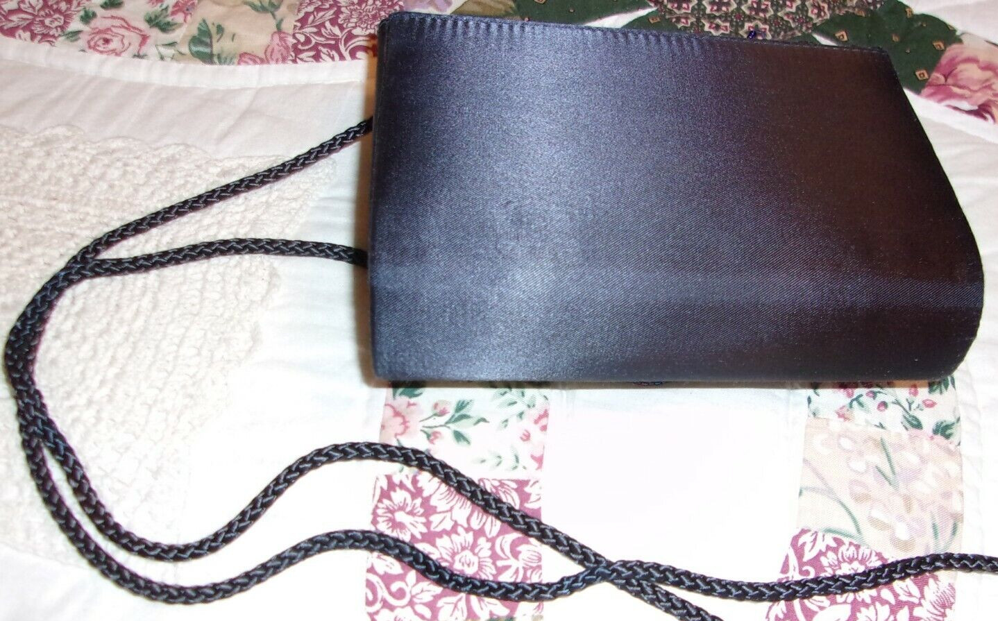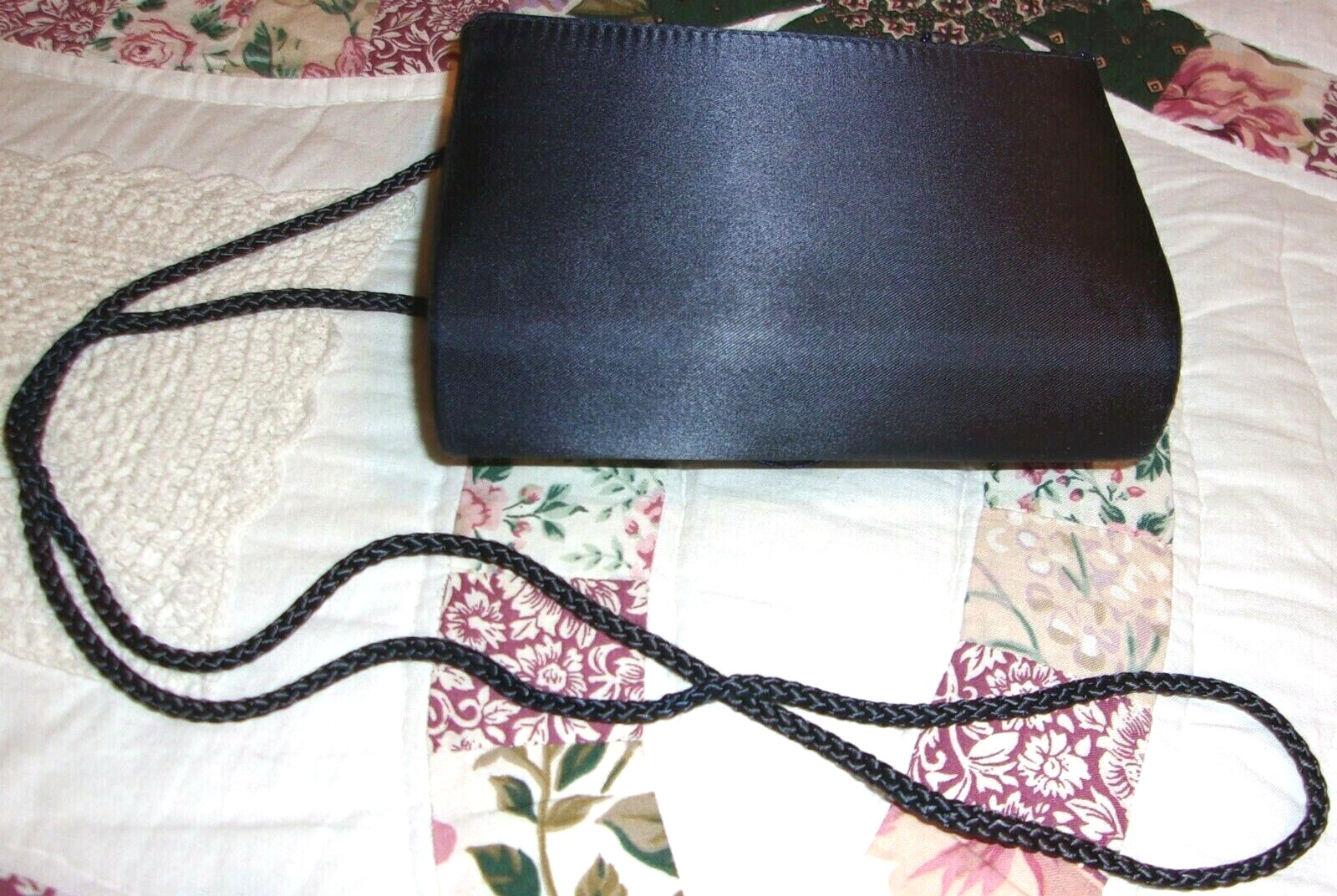 как выглядит VINTAGE BLUE SATIN BEADED HANDBAG BRAID CORD SHOULDER CLUTCH PURSE PROM COCKTAIL фото