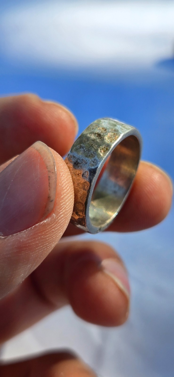 как выглядит Vtg 1980s Hand Hammered Design Sterling Silver 925 Band Thick US Size Ring 8.25 фото