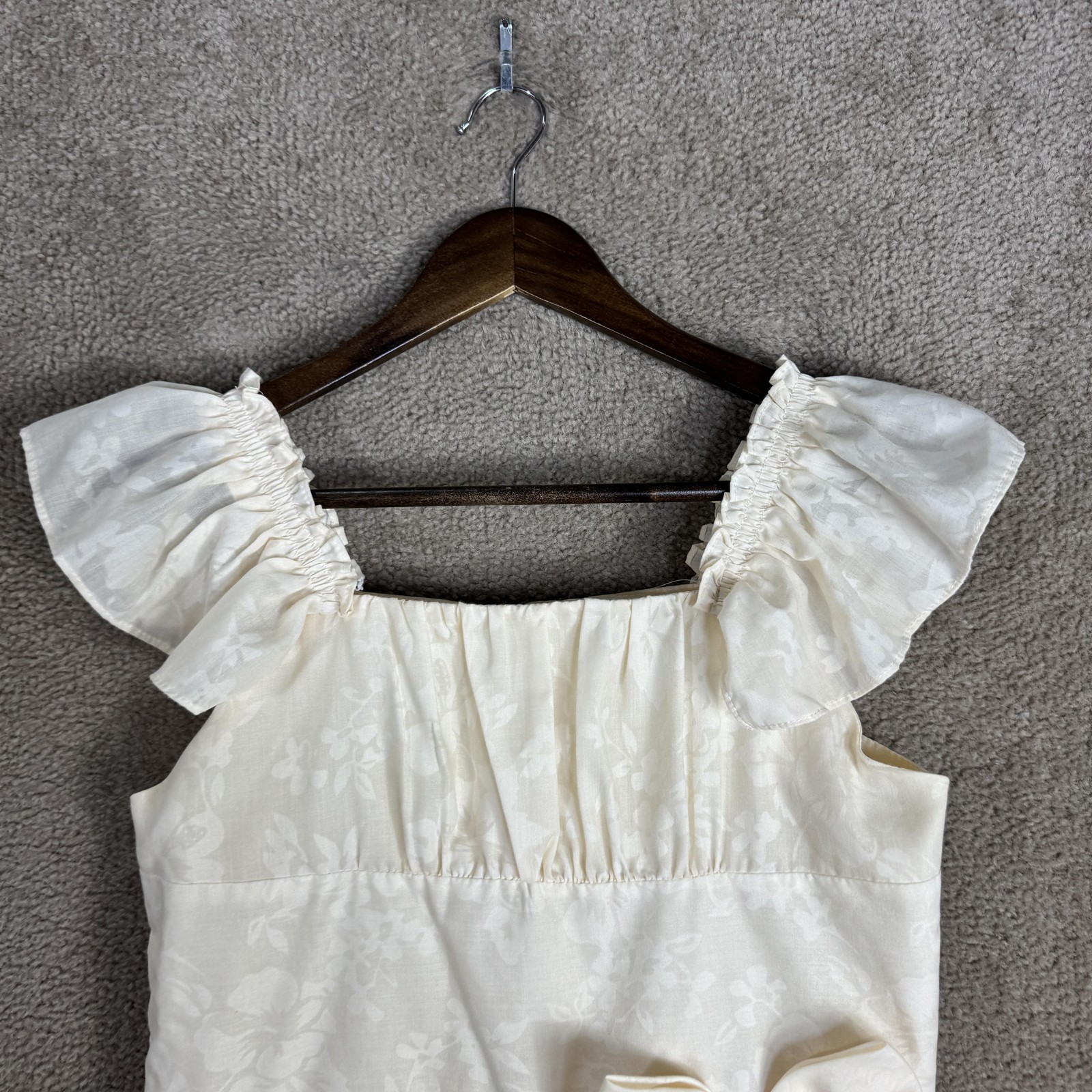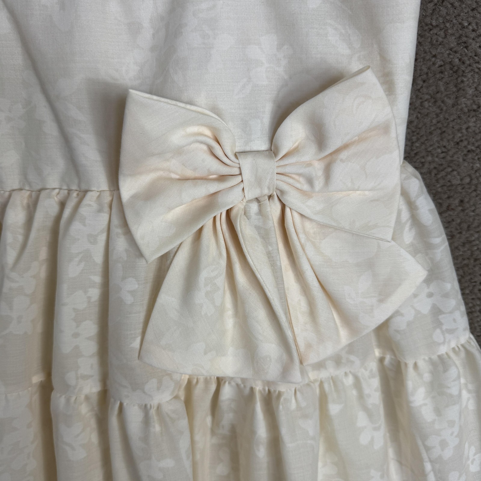 Bonnie Jean Dress Girls 16 Ivory Floral Border Bow Ruffle Flutter Sleeve Lined