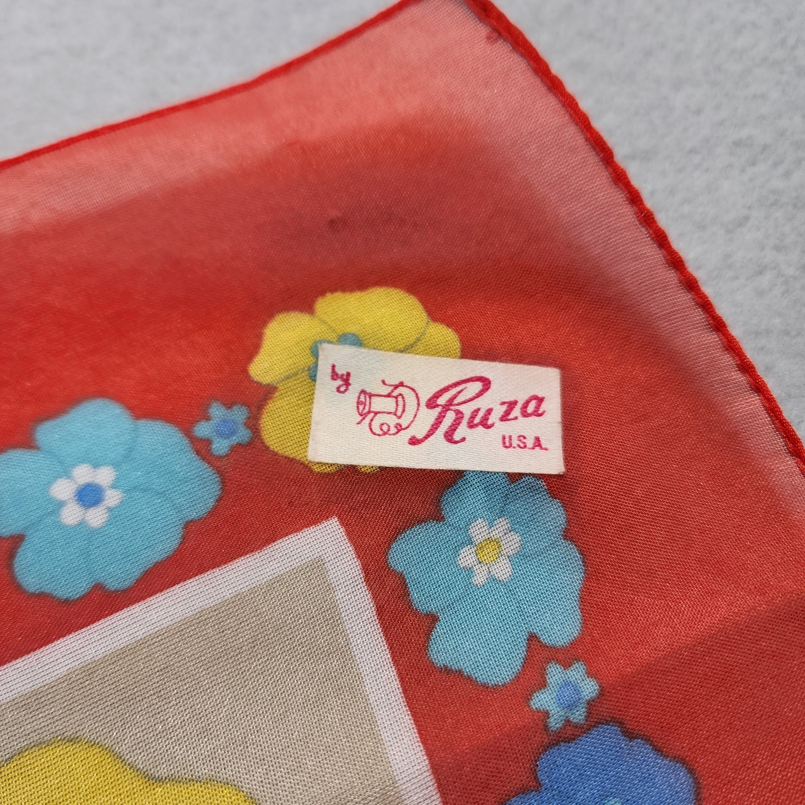как выглядит Floral Square Silk Vtg Made in USA Scarf 70s 80s Retro Square фото
