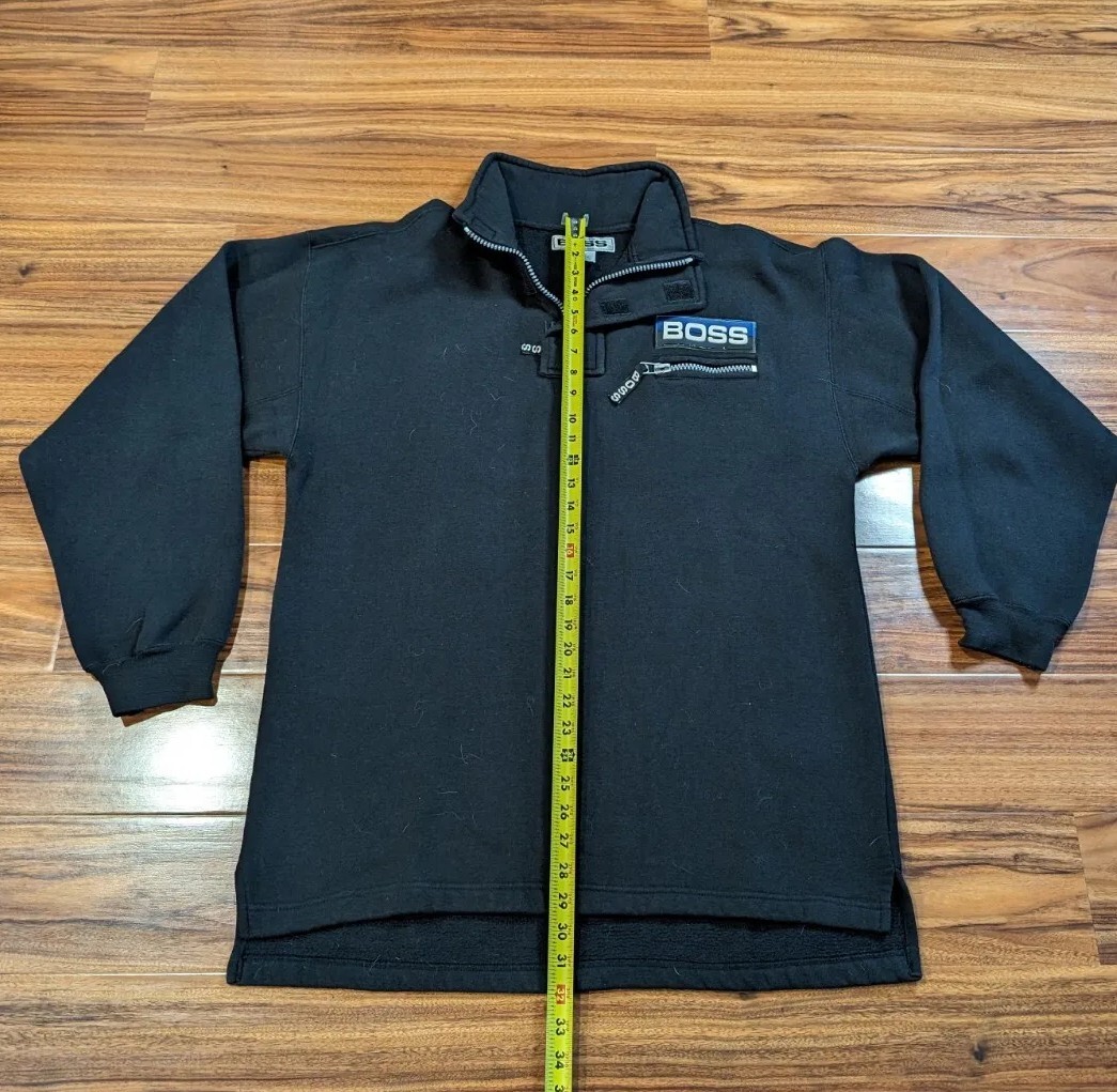 как выглядит Vintage Hip Hop Y2K Hugo Boss America 1/4 Zip Patchwork Black Sweatshirt Sz L фото