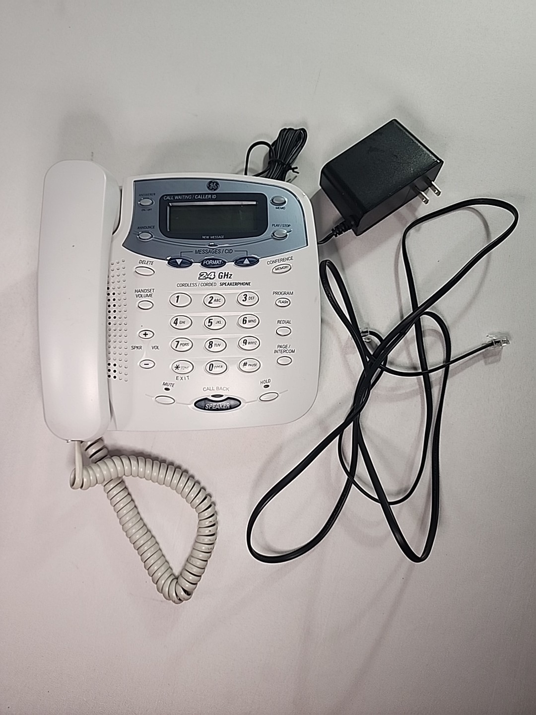 GE Landline Corded Phone White Desk or Wall Speakerphone