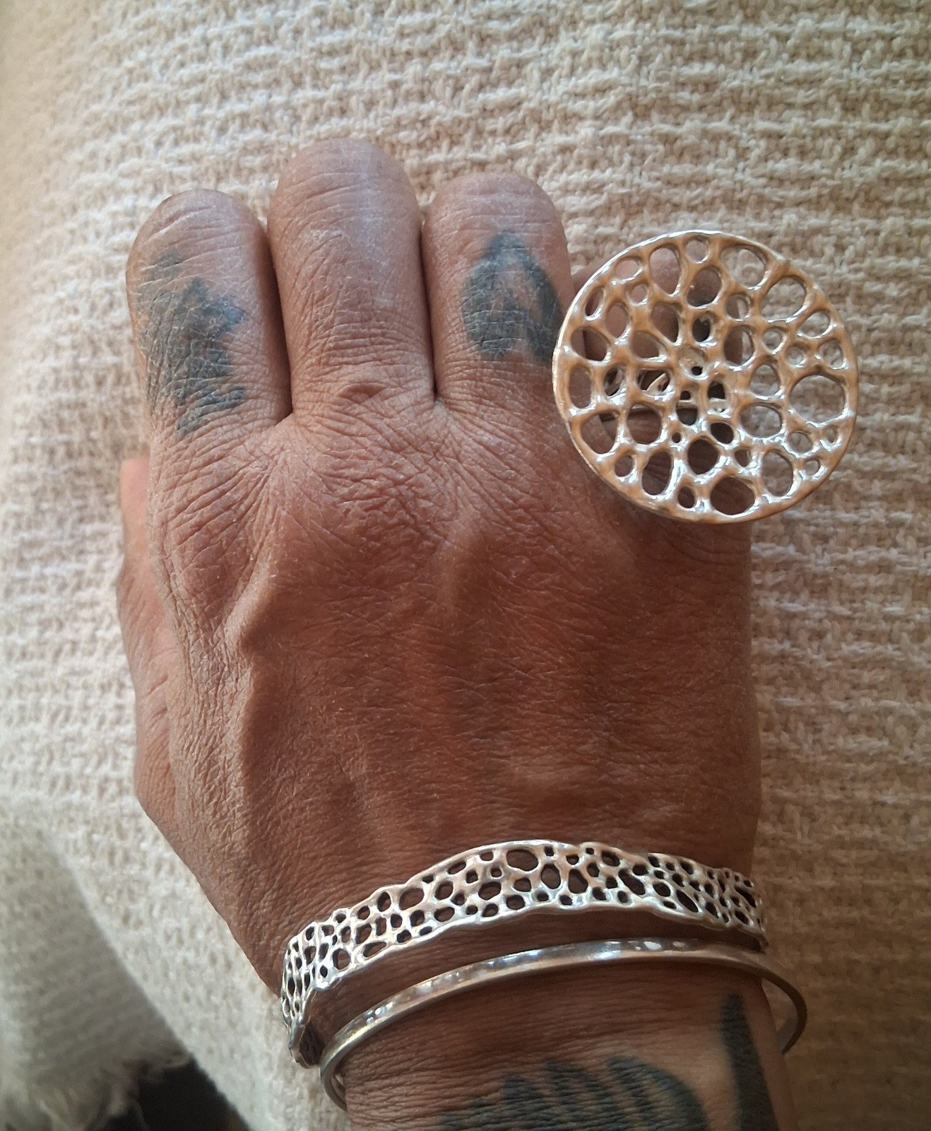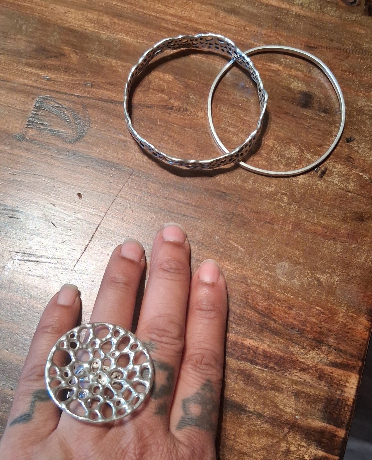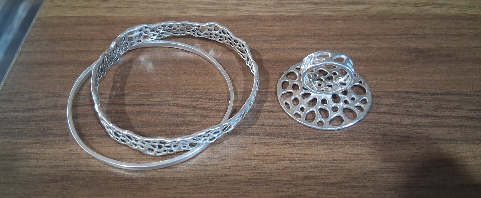 Hand Crafted Sterling Silver Set Ring 2 Bracelets