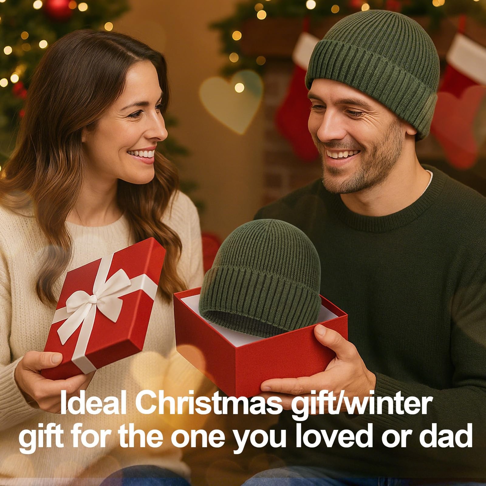 Oversized L/XL/XXL Merino Wool Beanie Hat for Men Big Head Cuffed Watch Cap W...