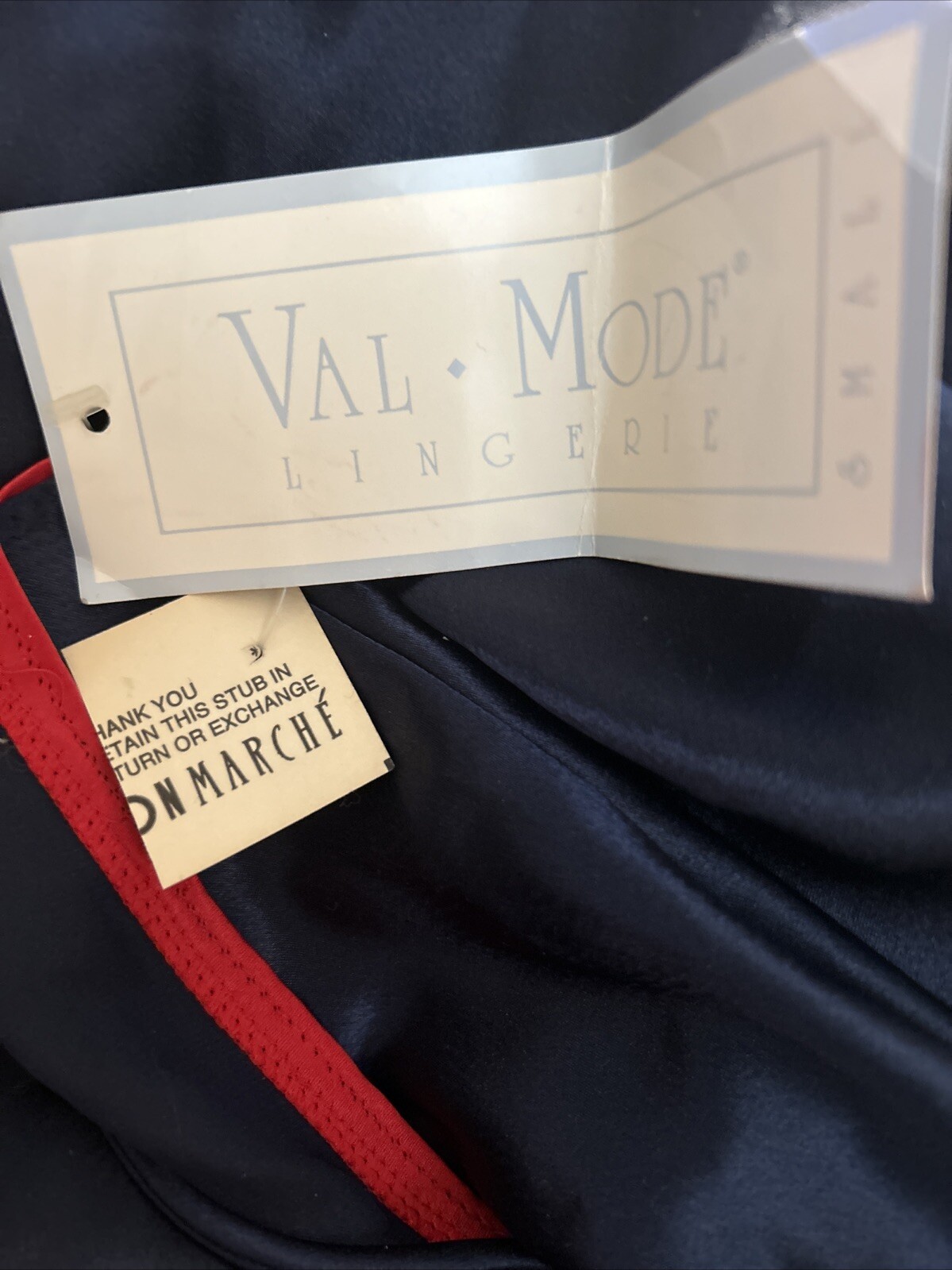 как выглядит Vintage Val Mode Nightgown S New Navy Blue Satin Chemise NOS From Bon Marche NWT фото