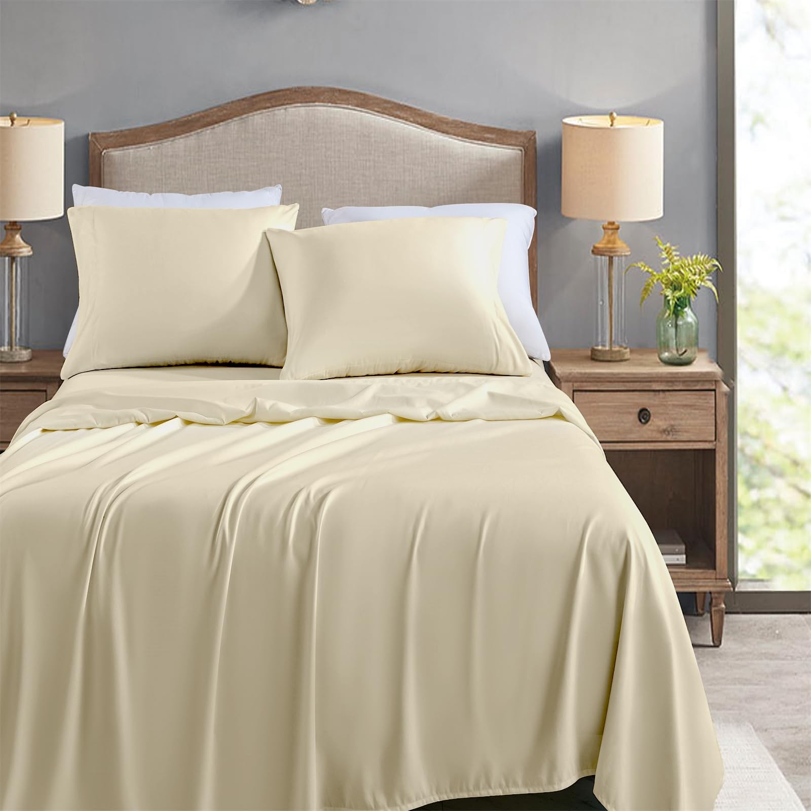 FreshCulture Twin Flat Sheets Pack of 6 Microfiber Bedding Sheets Beige