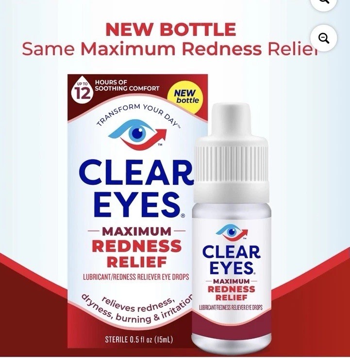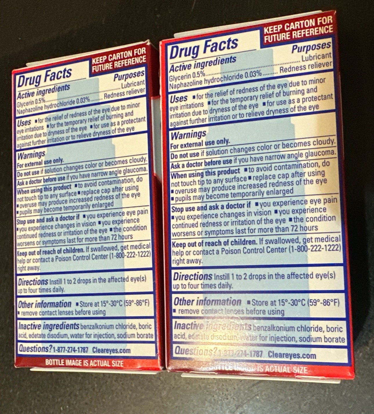 как выглядит Clear Eyes, Maximum Redness Relief Eye Drops, 0.5 Fl Oz Pack of 2 EXP 07/2027 фото