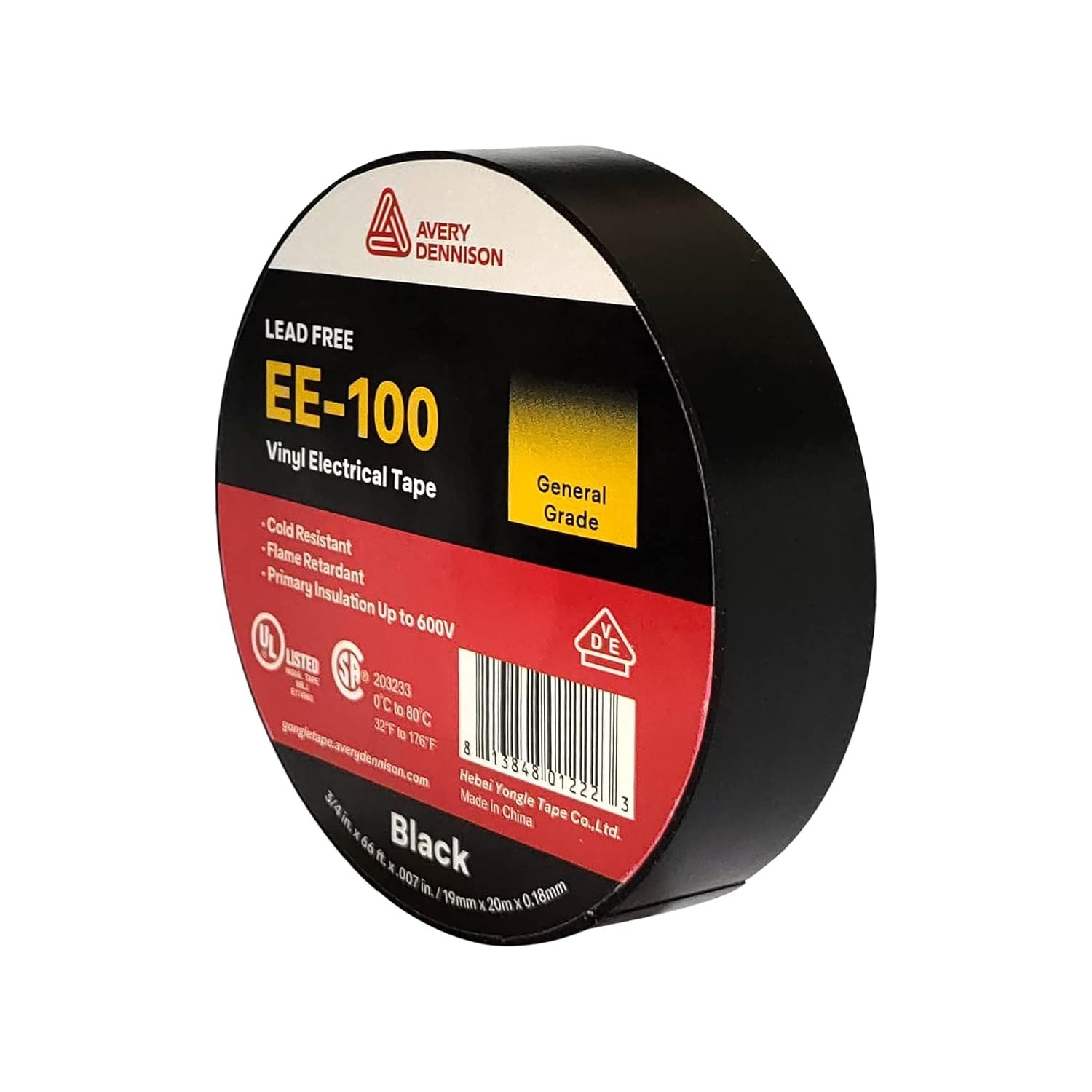 Listed Insulating Vinyl Tape, in x 66 ft, Heavy-Duty Electrical Black Tape