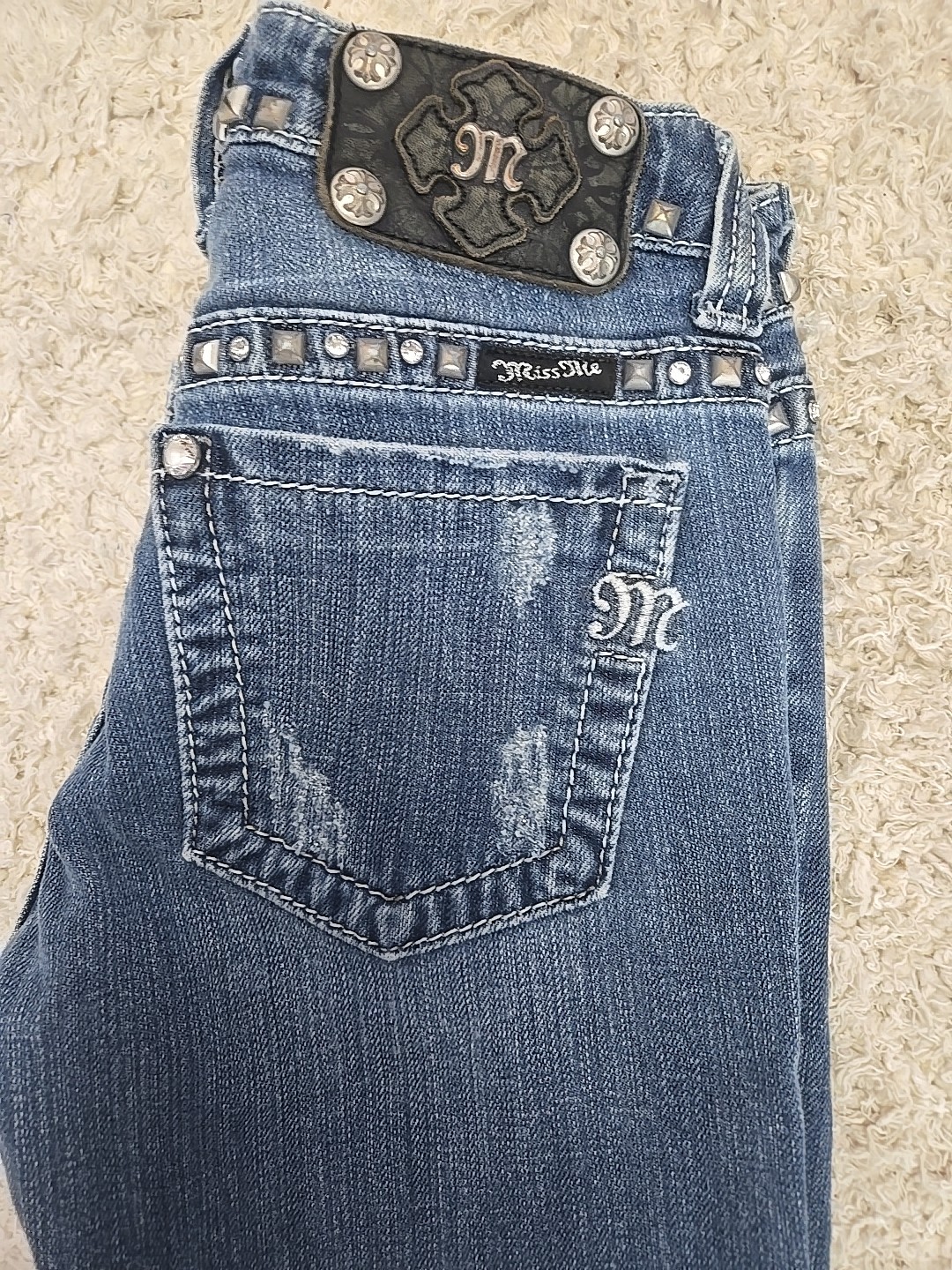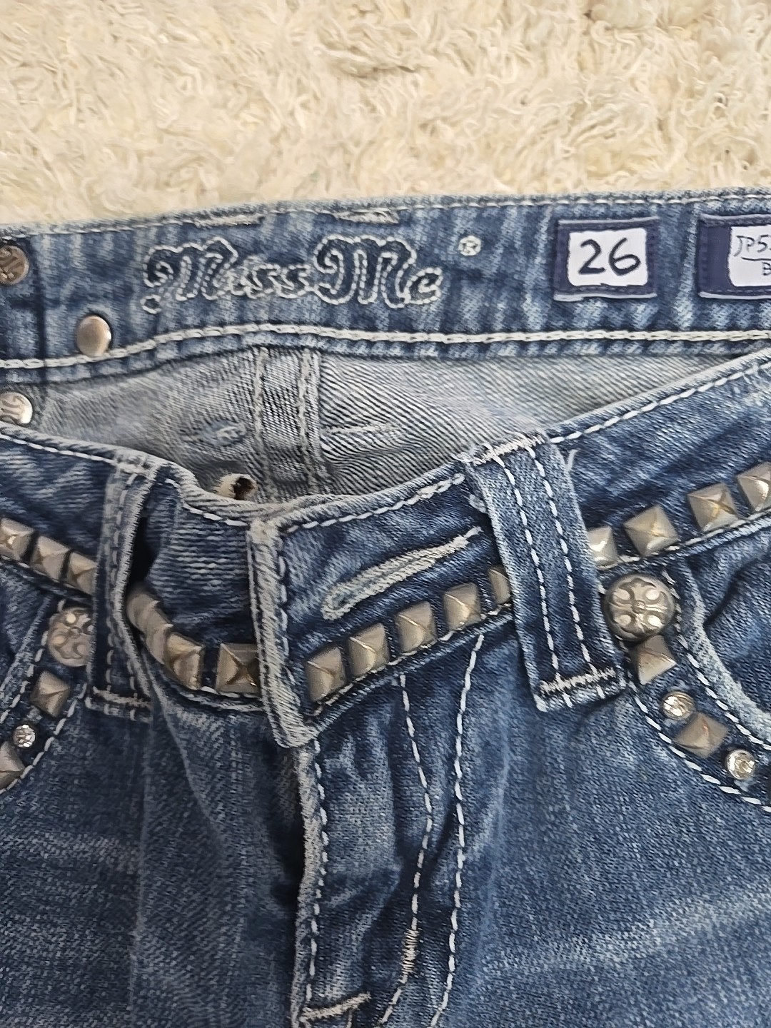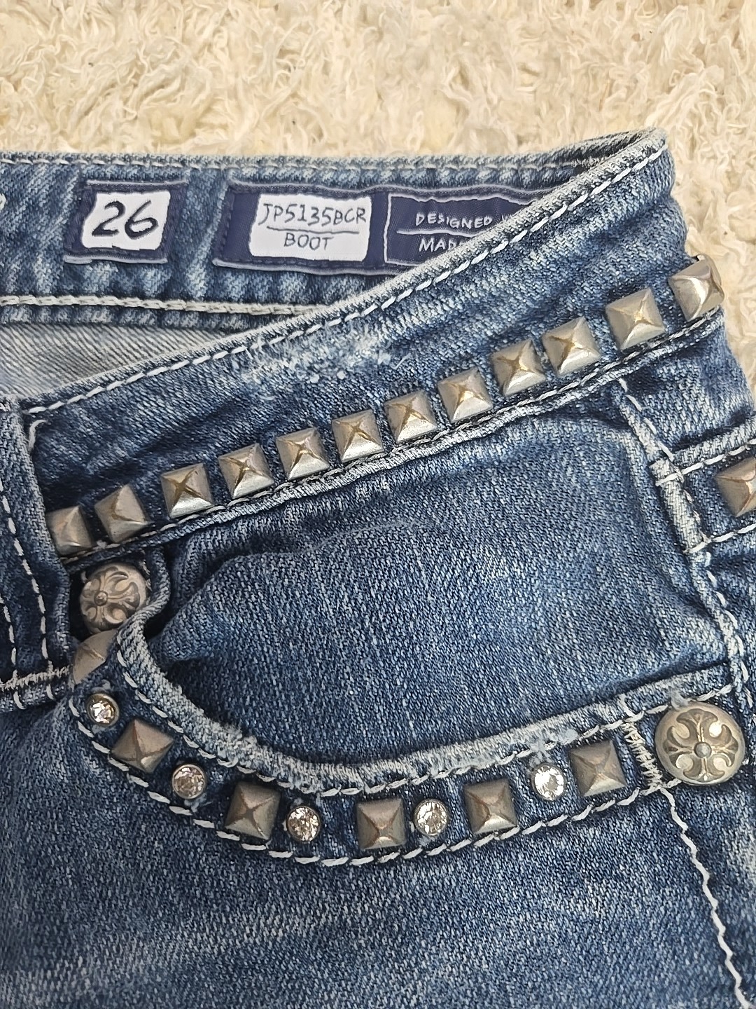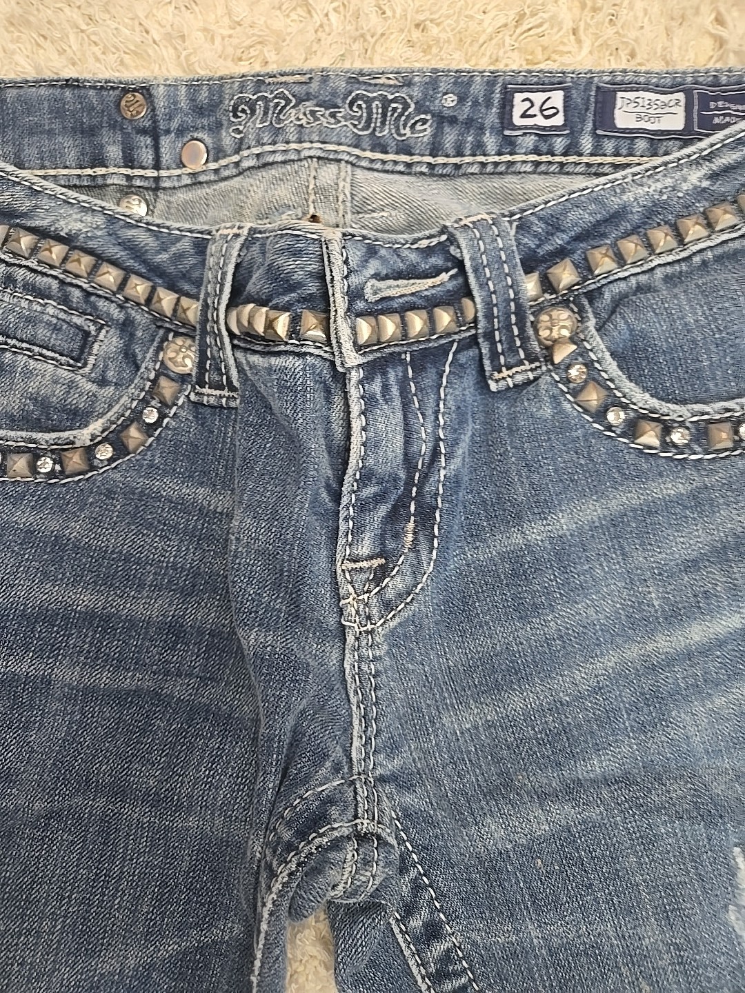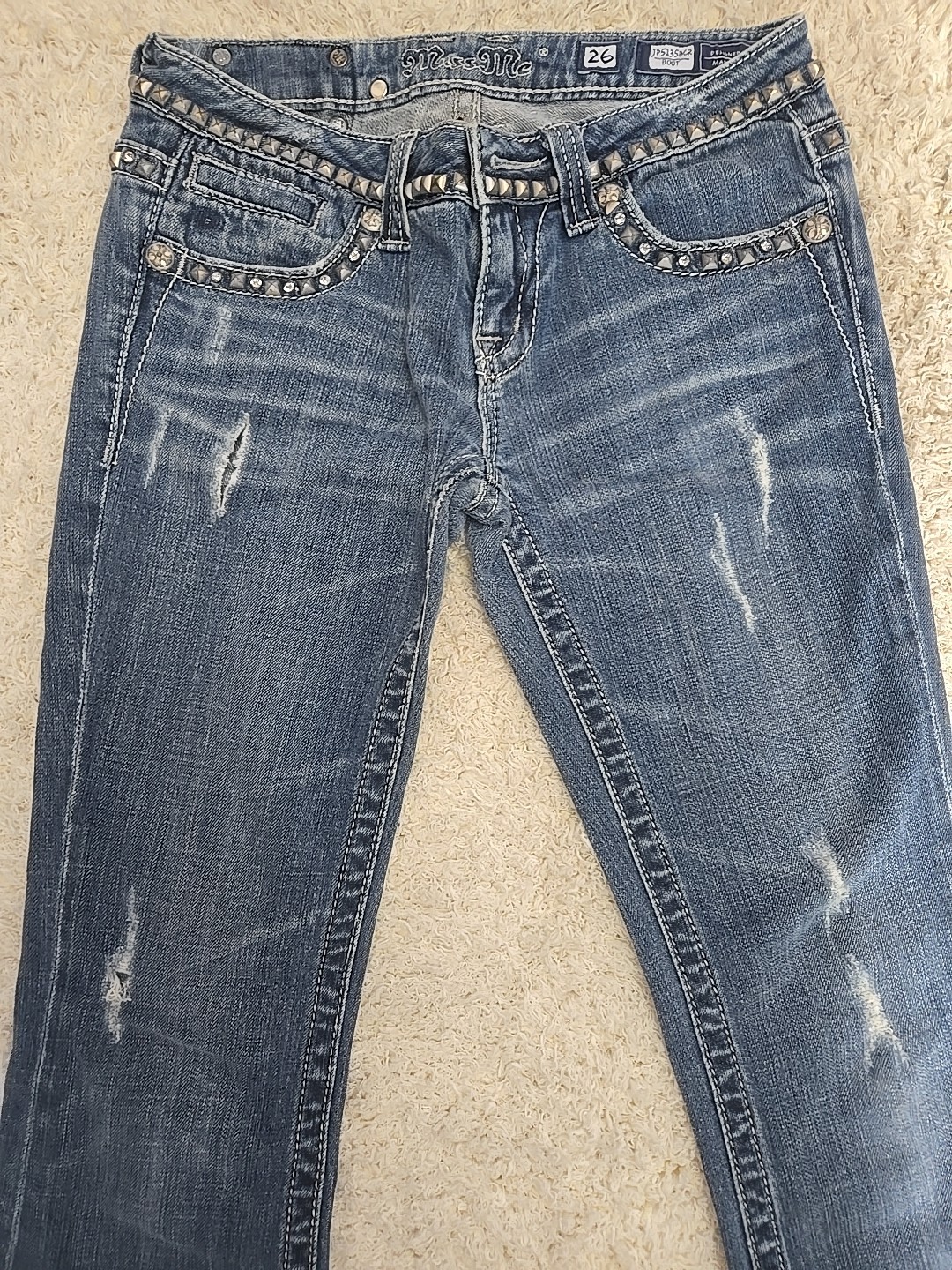 как выглядит Miss Me Jeans Womens 26 Blue Bootcut Distressed JP5135BCR BOOT фото