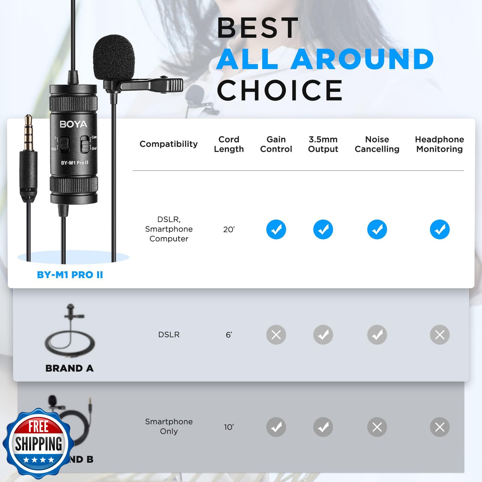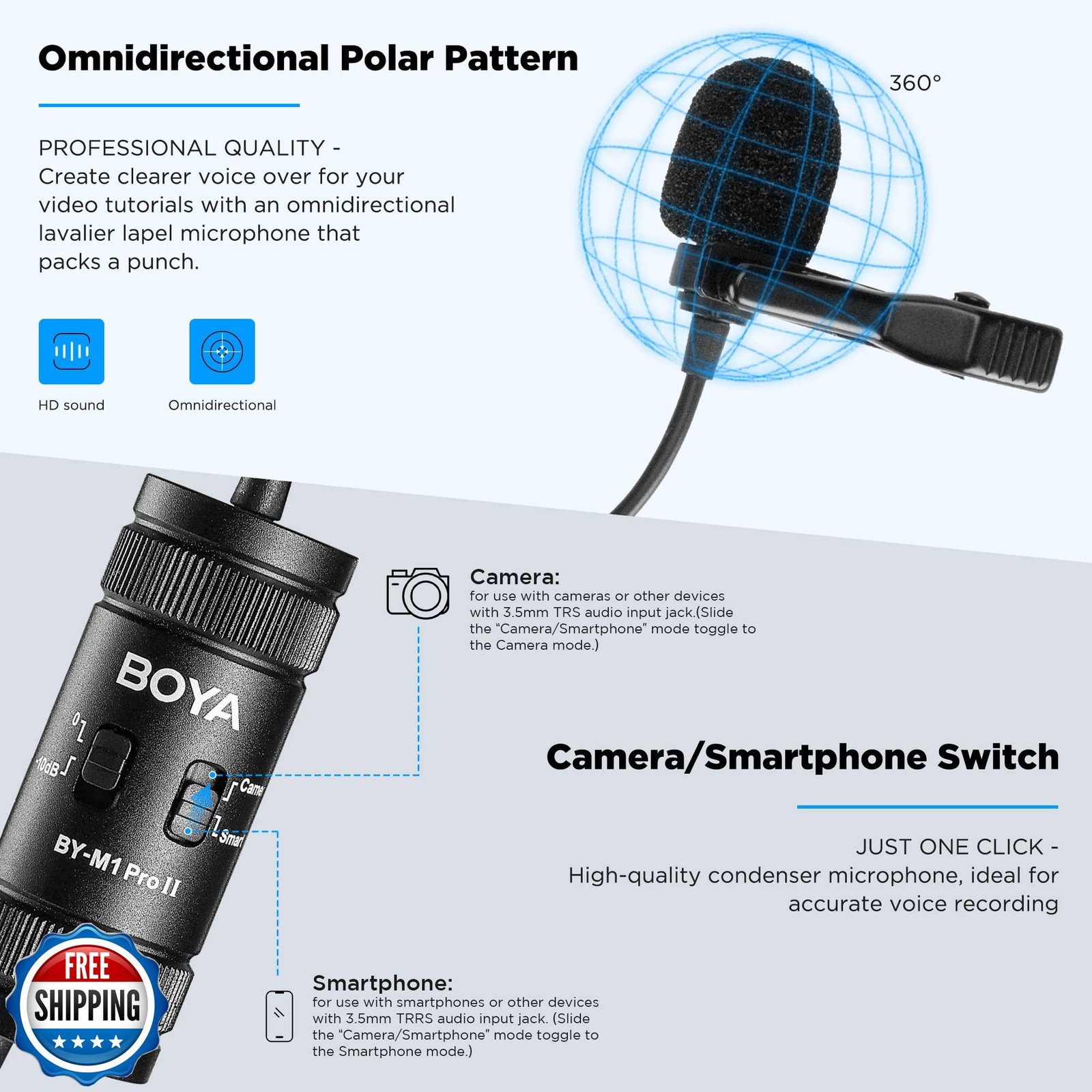 BOYA Lavalier Lapel Microphone - No Battery, by-M1 Pro ll Omnidir