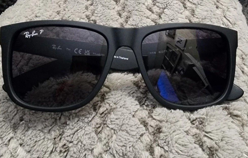 как выглядит Ray-Ban Justin Matte Black Polarized Grey 54mm Lenses Sunglasses RB4165 622/2V фото