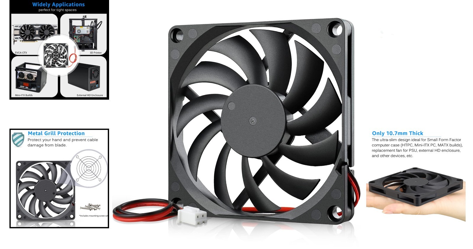 Ultra-Thin 80mm x 80mm x 10mm 12V Brushless DC Cooling Fan - Quiet Efficient
