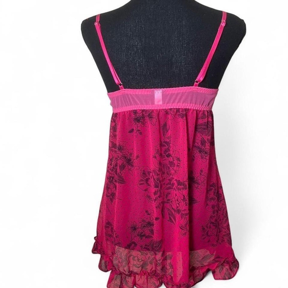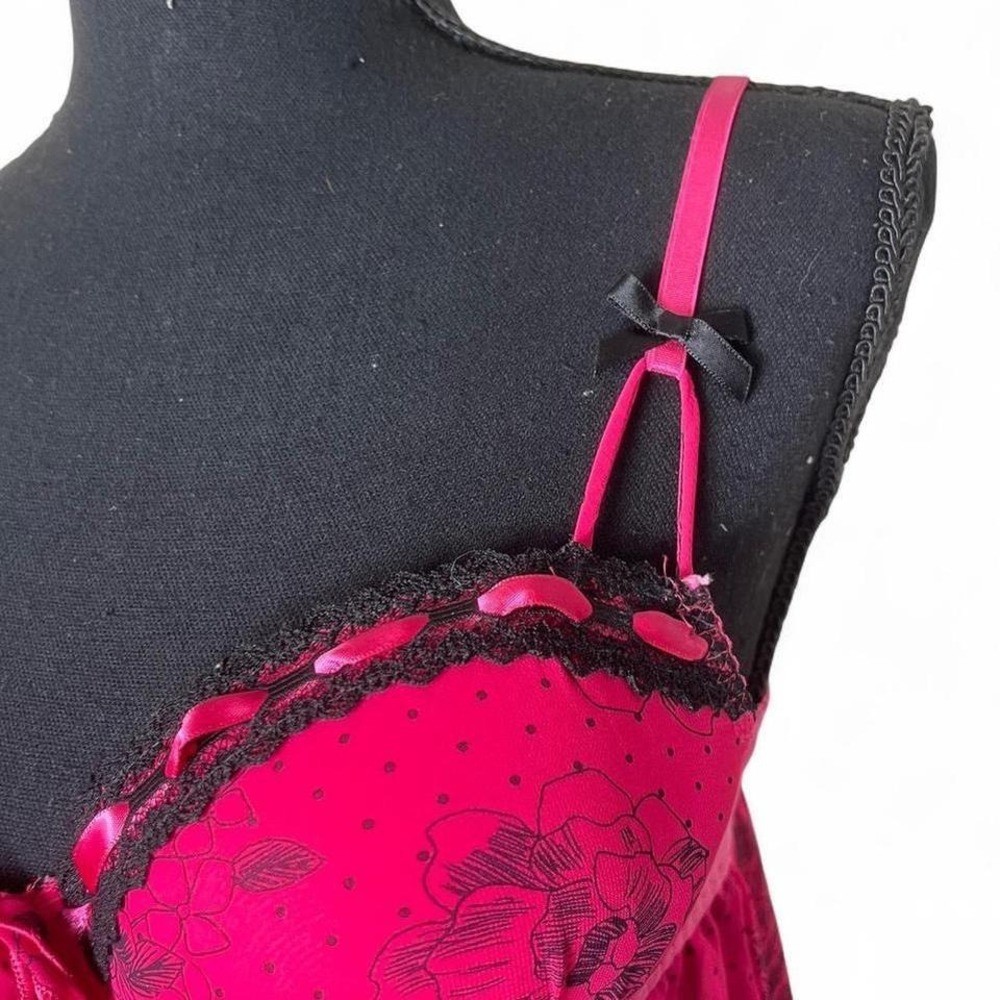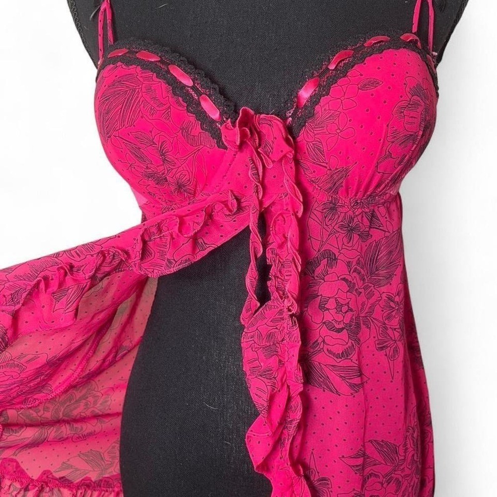 как выглядит Pink and black floral lace babydoll lingerie slip dress with ruffles фото
