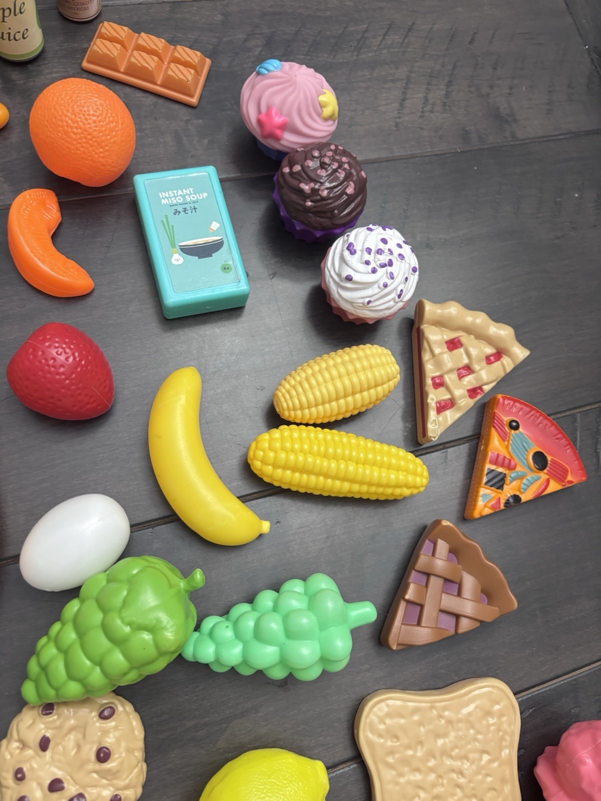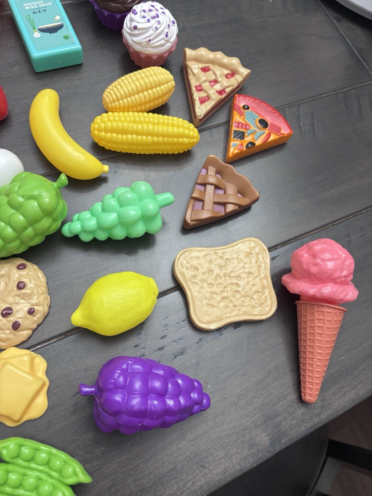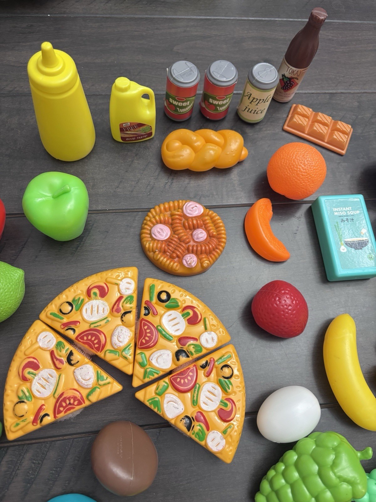 Lot of 53 Pieces Pretend Play Food Fruits Vegetables Plastic Pizza Pie Ice Cream