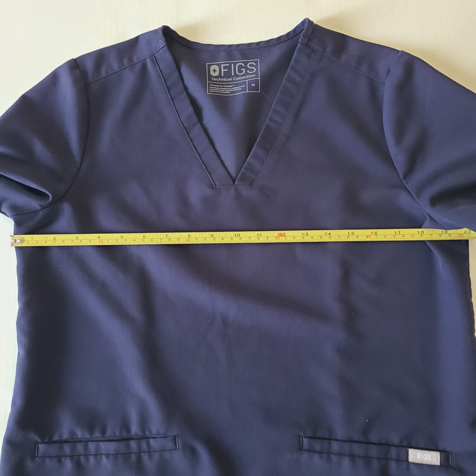 как выглядит FIGS Technical Collection Scrub Top Womens Medium Blue Short Sleeve V Neck Exc фото