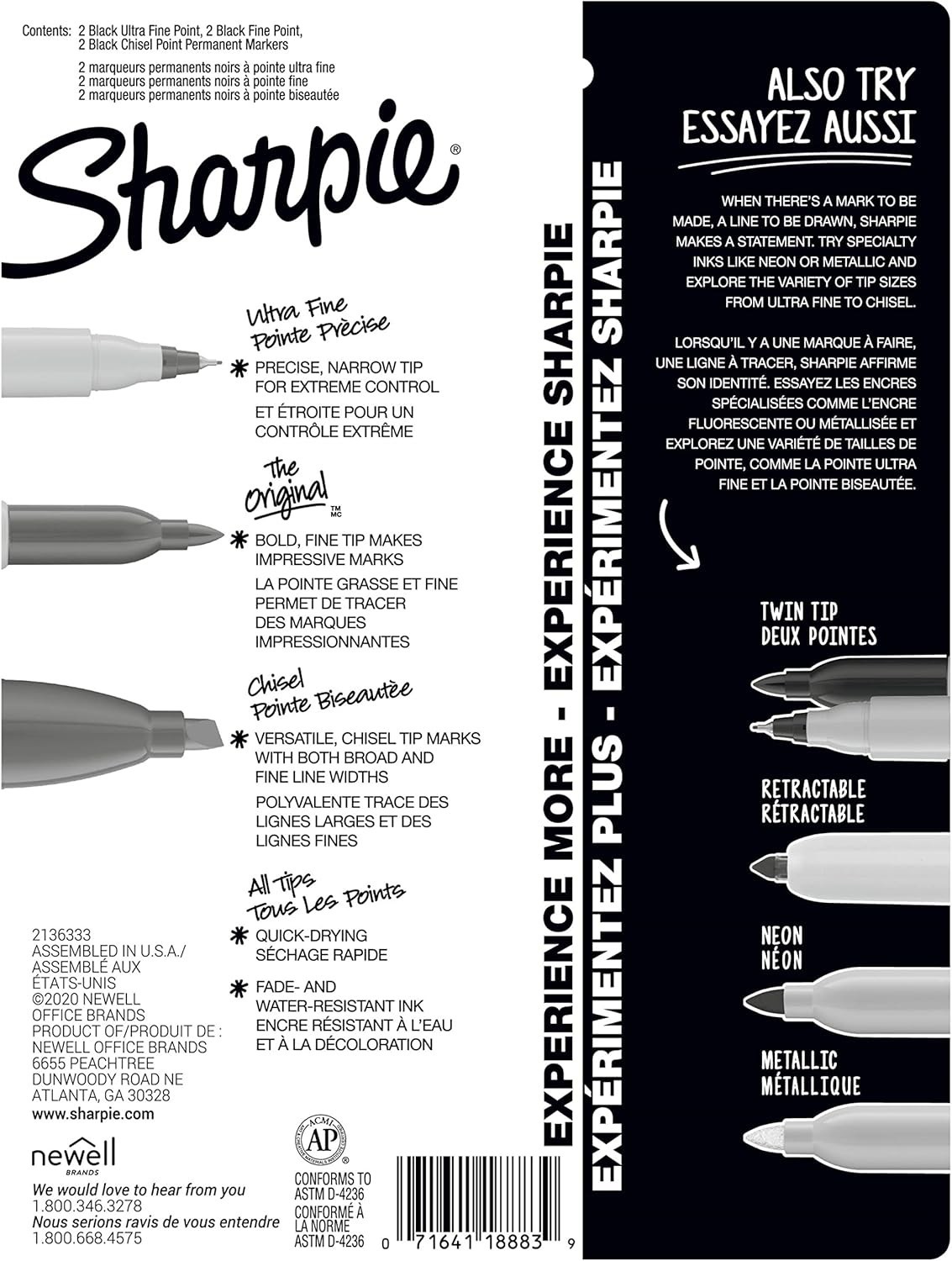 Sharpie Permanent Markers 6 Count Variety Pack Fine Ultra Fine Chisel Tip Black