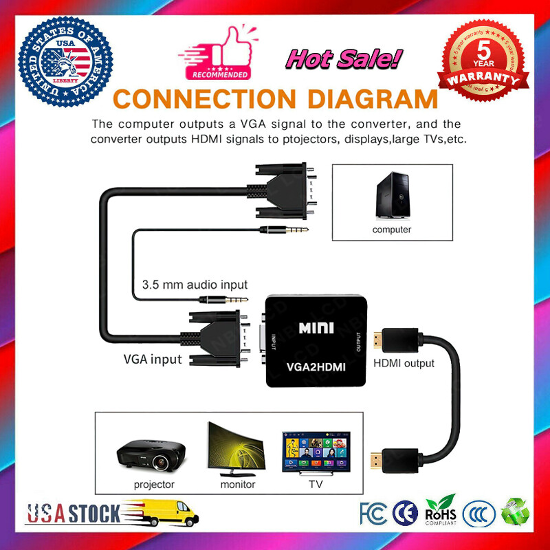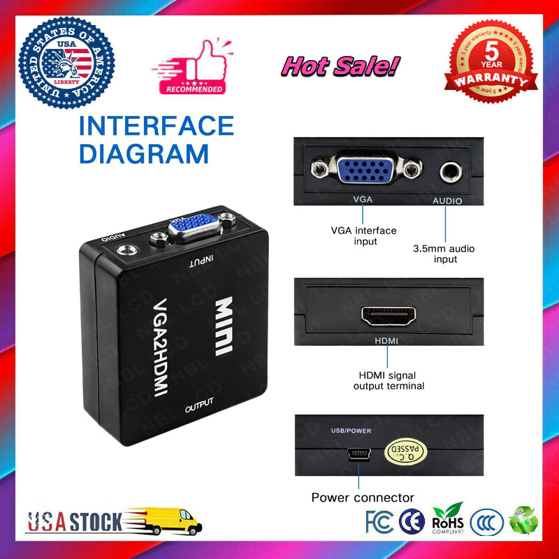 NEW VGA to HDMI Audio Video Converter Adapter Mini VGA to HDMI 1080P Full HD