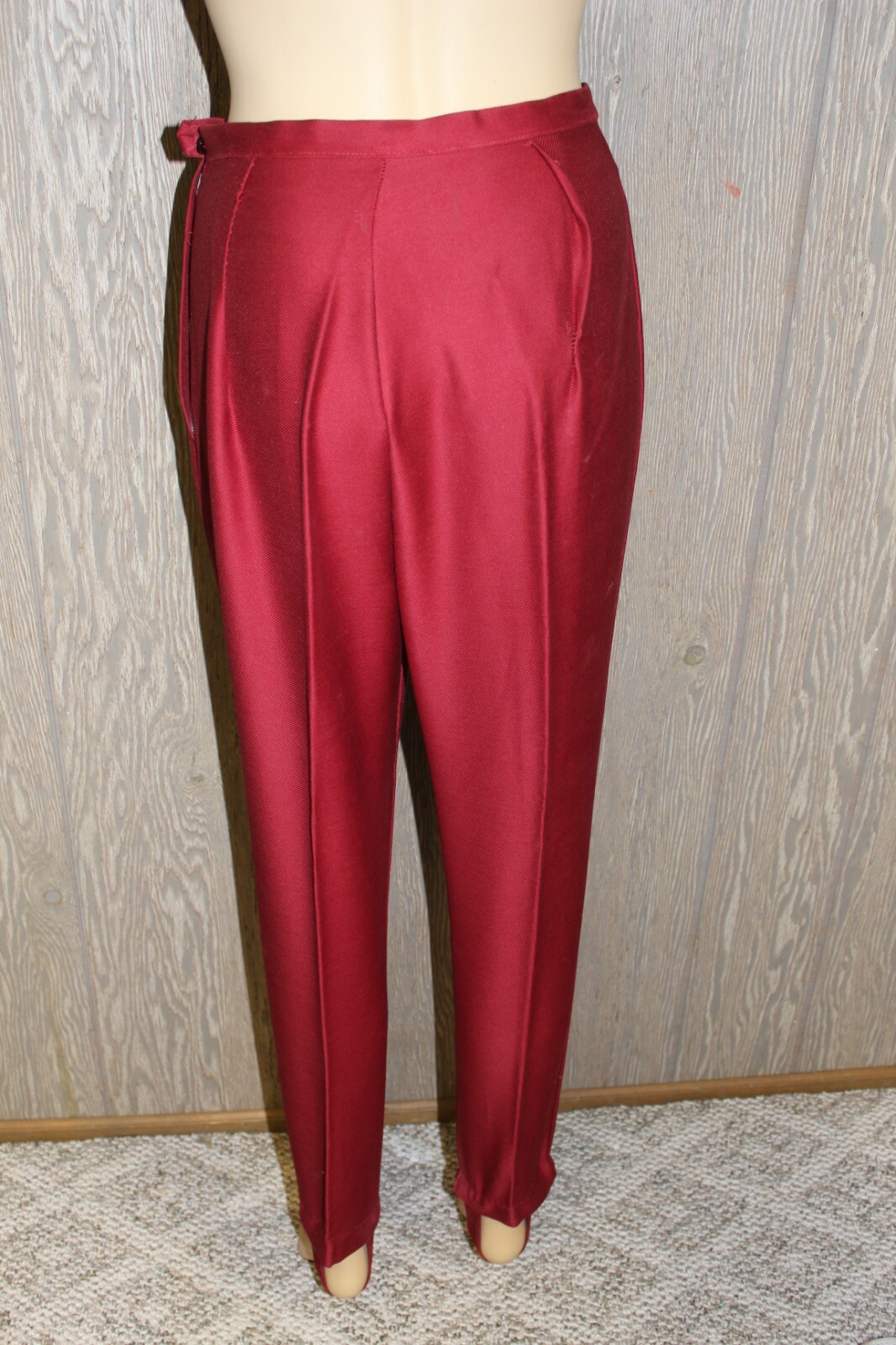 как выглядит Vtg 50s STRETCH MOD BURGUNDY Red Stirrup Pants Capri Side Zip High 26" Waist XS фото