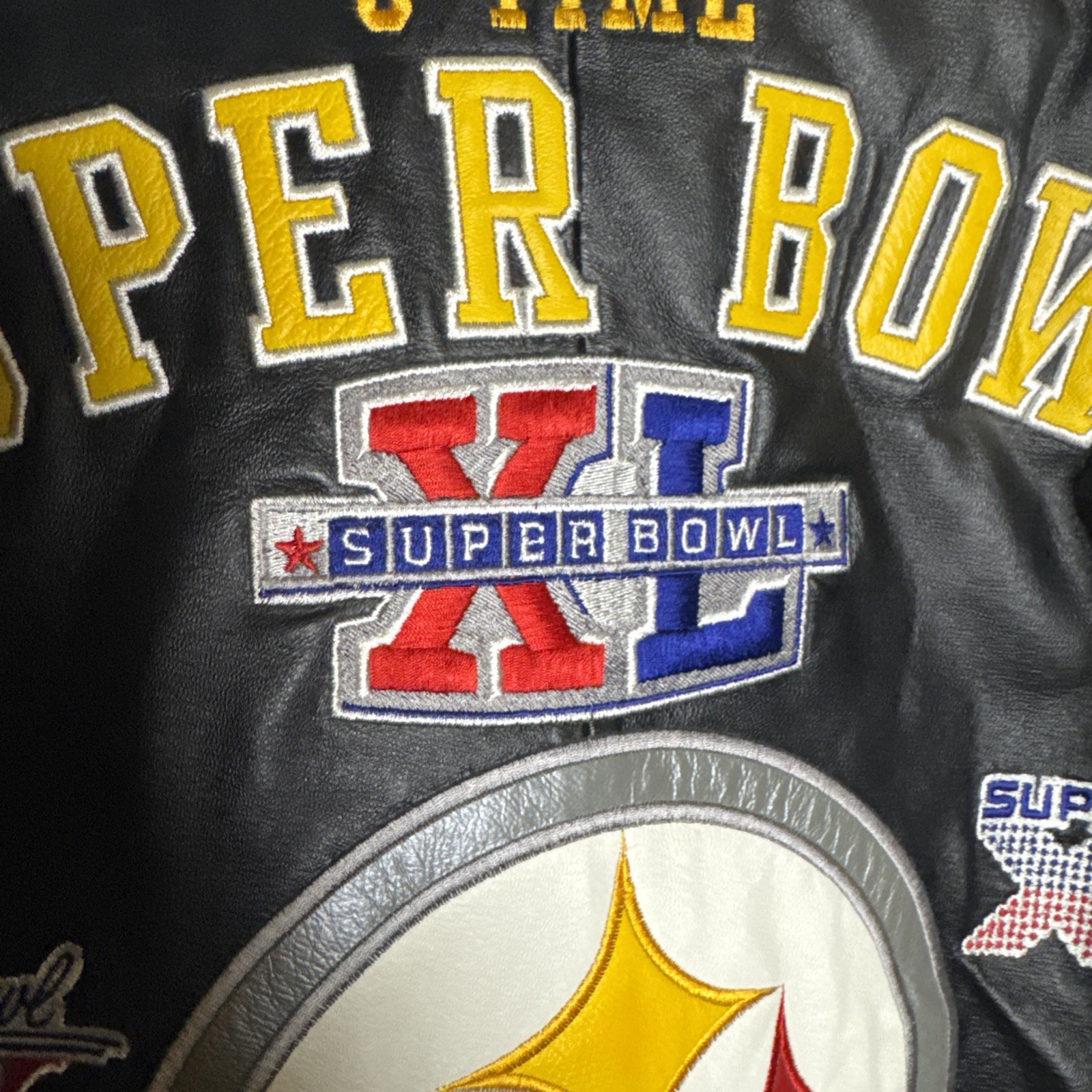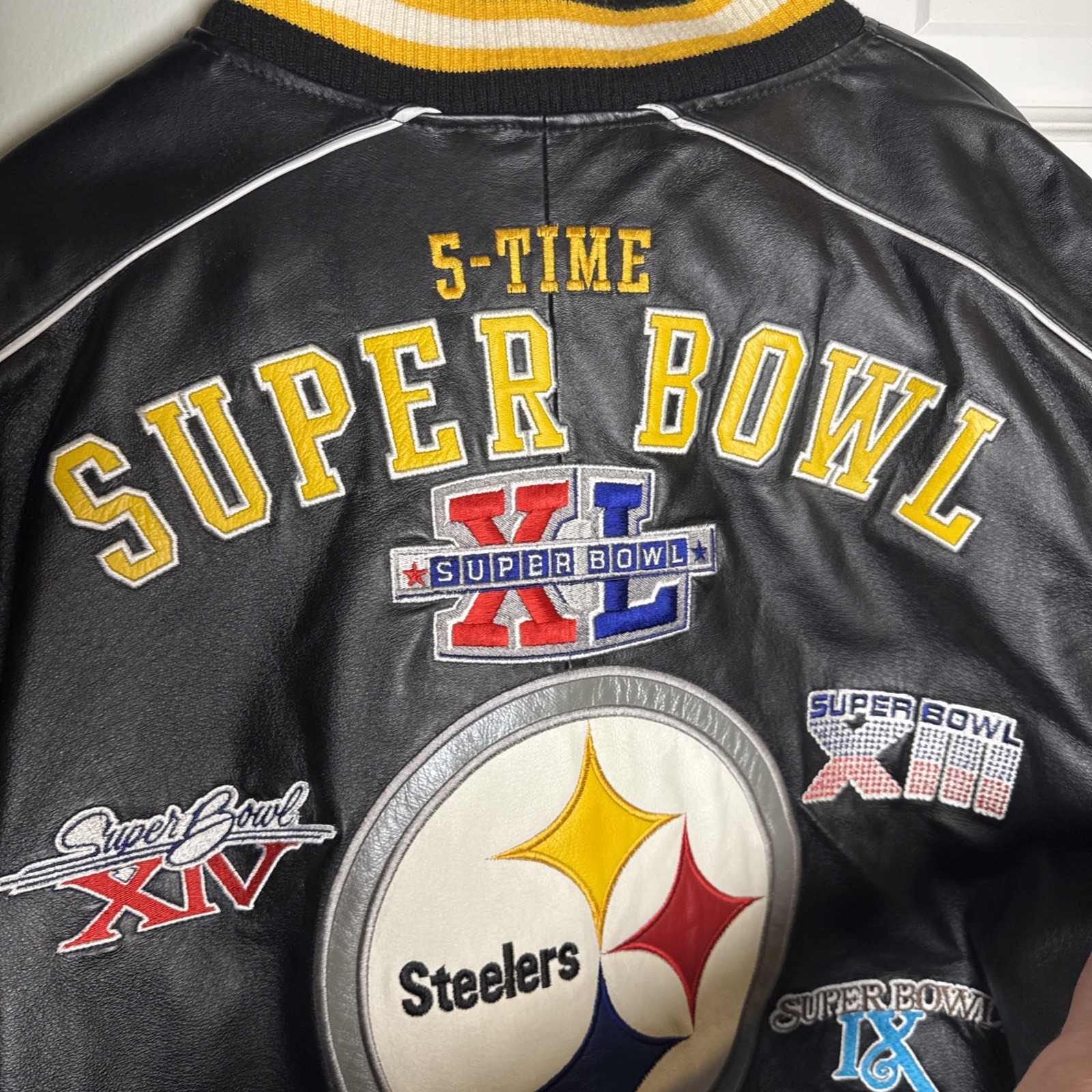 Vintage Pittsburgh Steelers 5-Time Super Bowl Leather Jacket- Lge. 2XL