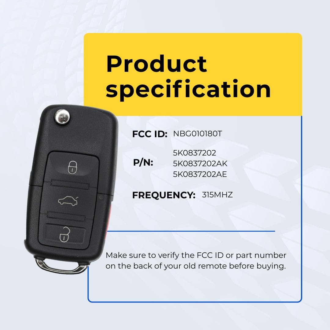 Key Fob Remote 2015 Volkswagen Golf FCC: NBG010180T MPN: 5K0837202
